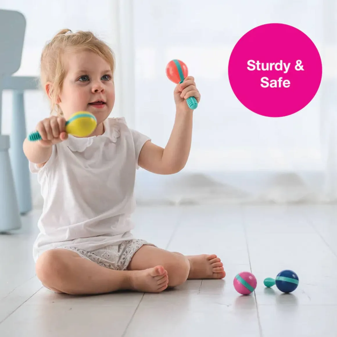 Shake, shake, shake! With our Maracas, you and your little one will enjoy hours of musical exploration. Whether you buy one or a set, these tropical shakers will impress you with their bright colors, quality sounds, sturdy materials, and an easy-to-grip handle. Come in assorted colors.