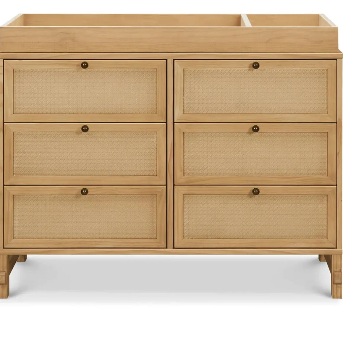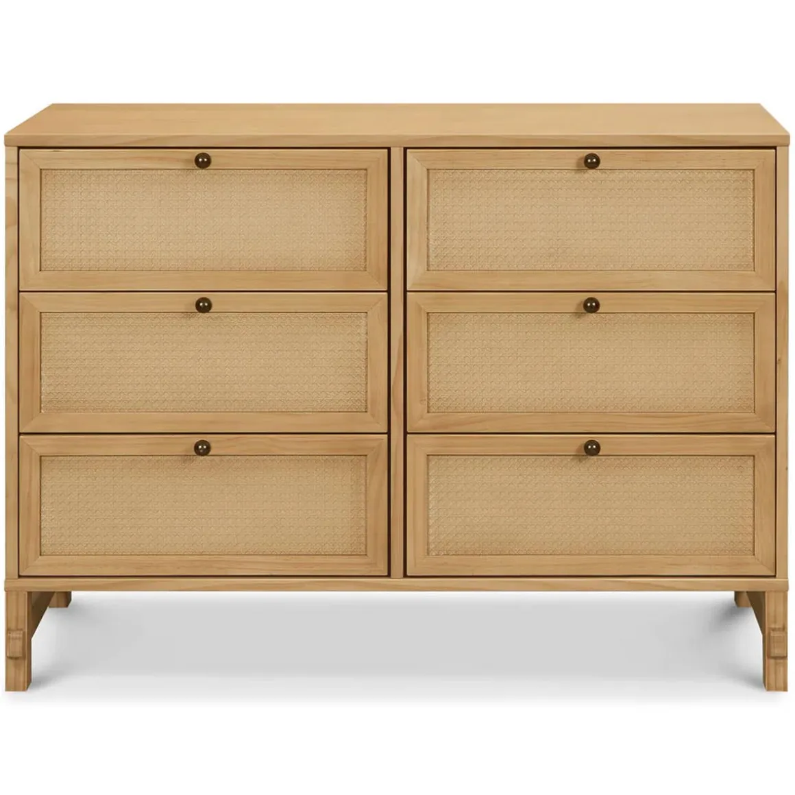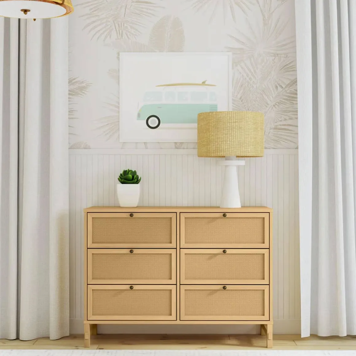 Complete your nursery’s elegant ensemble with the Margot 6-Drawer Dresser, a harmonious companion to the Margot Crib. With its clean lines and refined details, adorned with exquisite pressed cane accents that exude sophistication and charm, this dresser offers both style and functionality. Its generous storage space provides ample room for organizing your baby’s essentials, while the smooth-gliding drawers ensure effortless access to everything you need. The Margot Dresser not only adds a touch of sophistication to your nursery but also offers practicality that simplifies your daily routines.