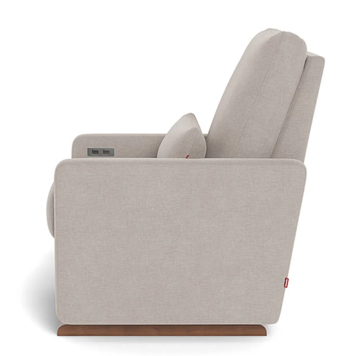 The Motorized Matera Glider Recliner includes plush and luxurious attached back & seat cushions — just like the Original Matera — only this cordless motorized version includes automatic reclining buttons. Enjoy the soothing glide, then when you are ready to recline – hold the button and your feet will be raised on the foot rest, followed by your back reclined effortlessly. So comfortable!