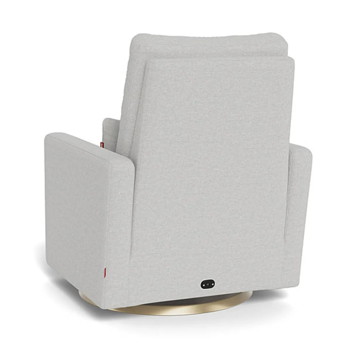 The Motorized Matera Glider Recliner includes plush and luxurious attached back & seat cushions — just like the Original Matera — only this cordless motorized version includes automatic reclining buttons. Enjoy the soothing glide, then when you are ready to recline – hold the button and your feet will be raised on the foot rest, followed by your back reclined effortlessly. So comfortable!