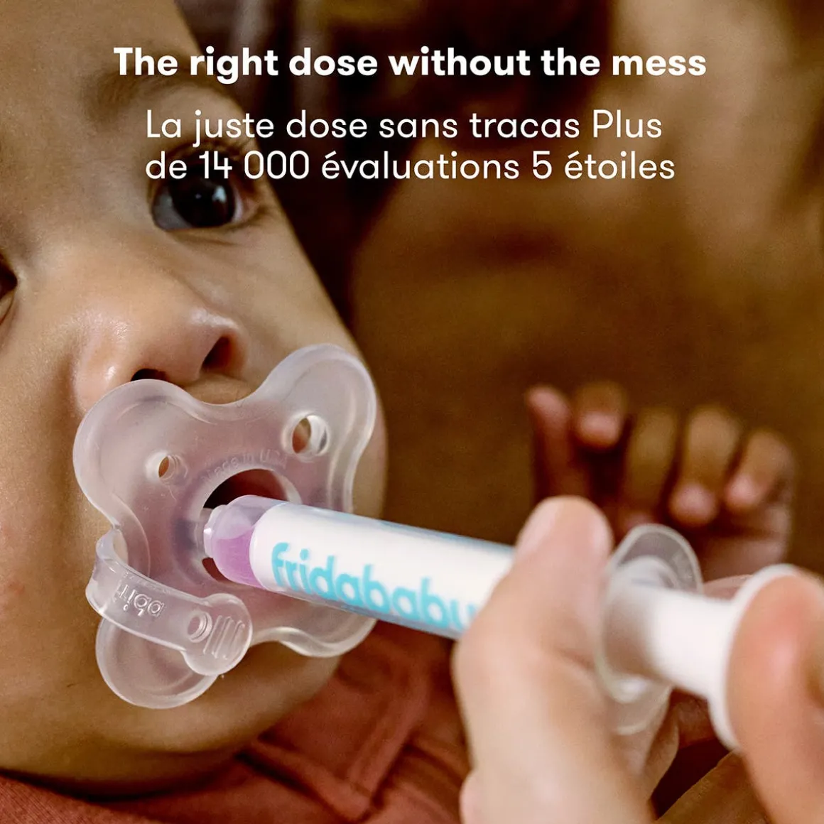 The right dose for baby, an extra dose of sanity for you. MediFrida delivers the full dose through a soft, familiar pacifier that sends medicine to the side of the cheek, bypassing baby’s taste buds. Baby can’t spit out what baby can’t taste! There’s more! MediFrida is the only paci-style medicine dispenser that doubles as a real pacifier, so dosing doesn’t disrupt baby’s busy soothing schedule.