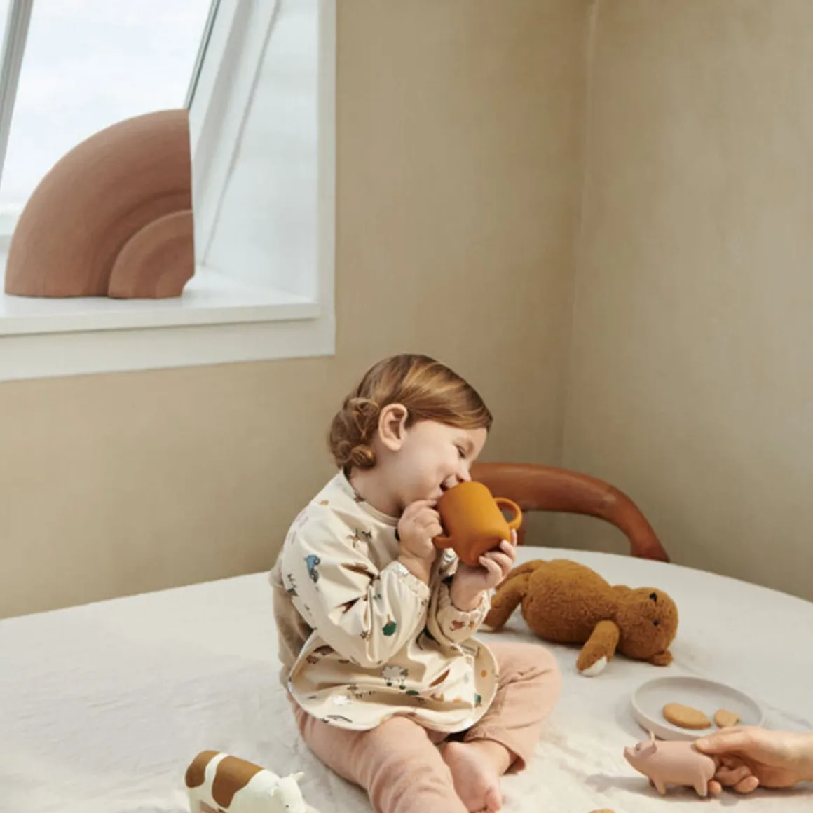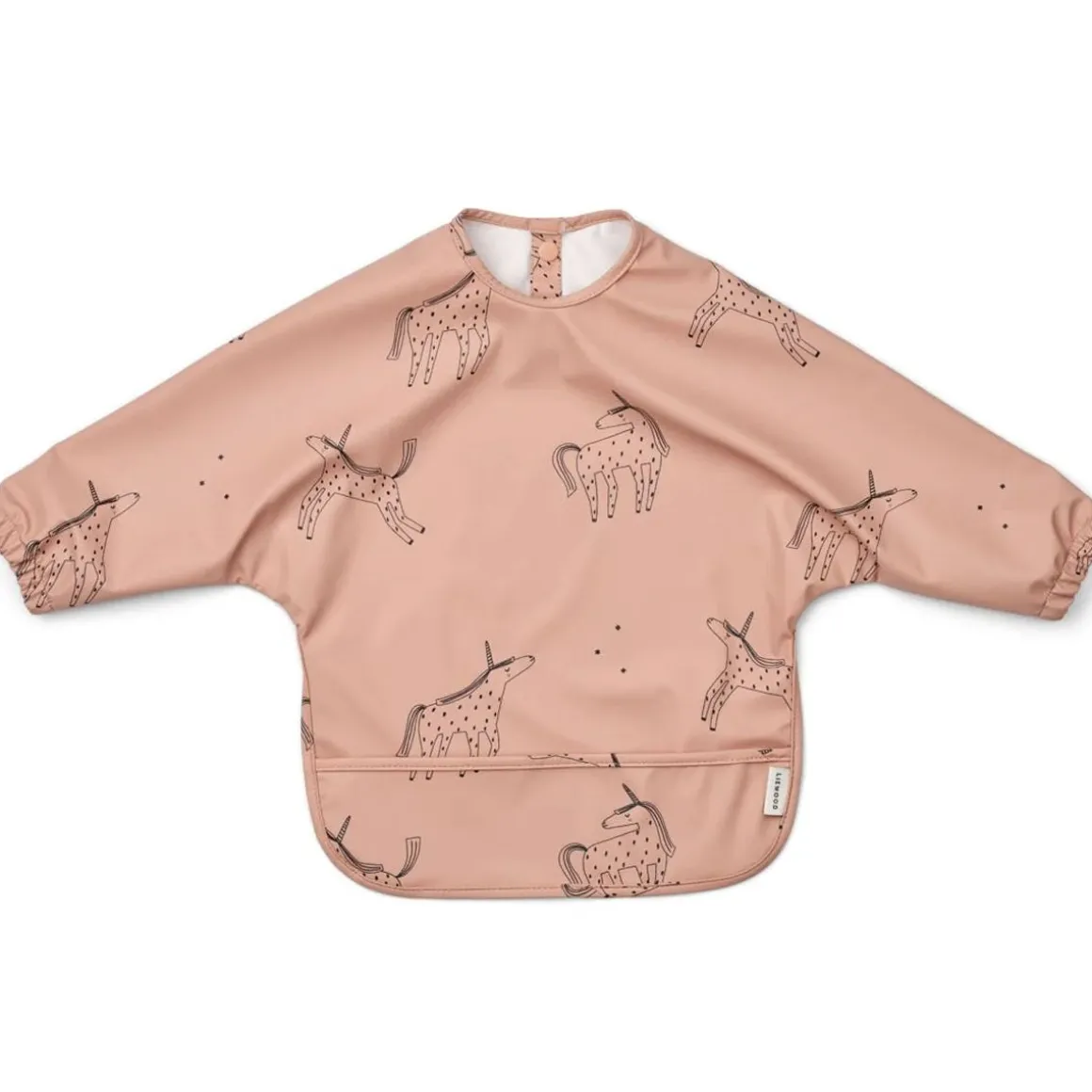 Liewood Lightweight Merle cape bib for children who are learning to eat. The recycled material makes it instantly re-usable: simply rinse and wipe clean.