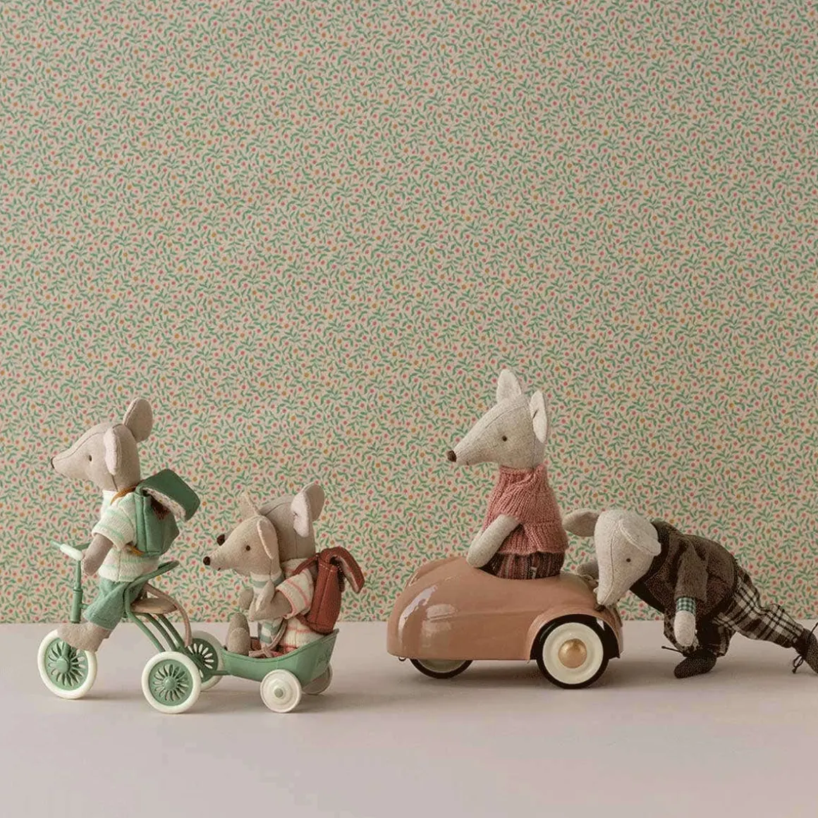 The metal car is an excellent means of transportation for any mice. It fits all mice in sizes little brother/sister, big brother/sister and mum/dad. The string included can be fastened under the car so the child can pull the car.