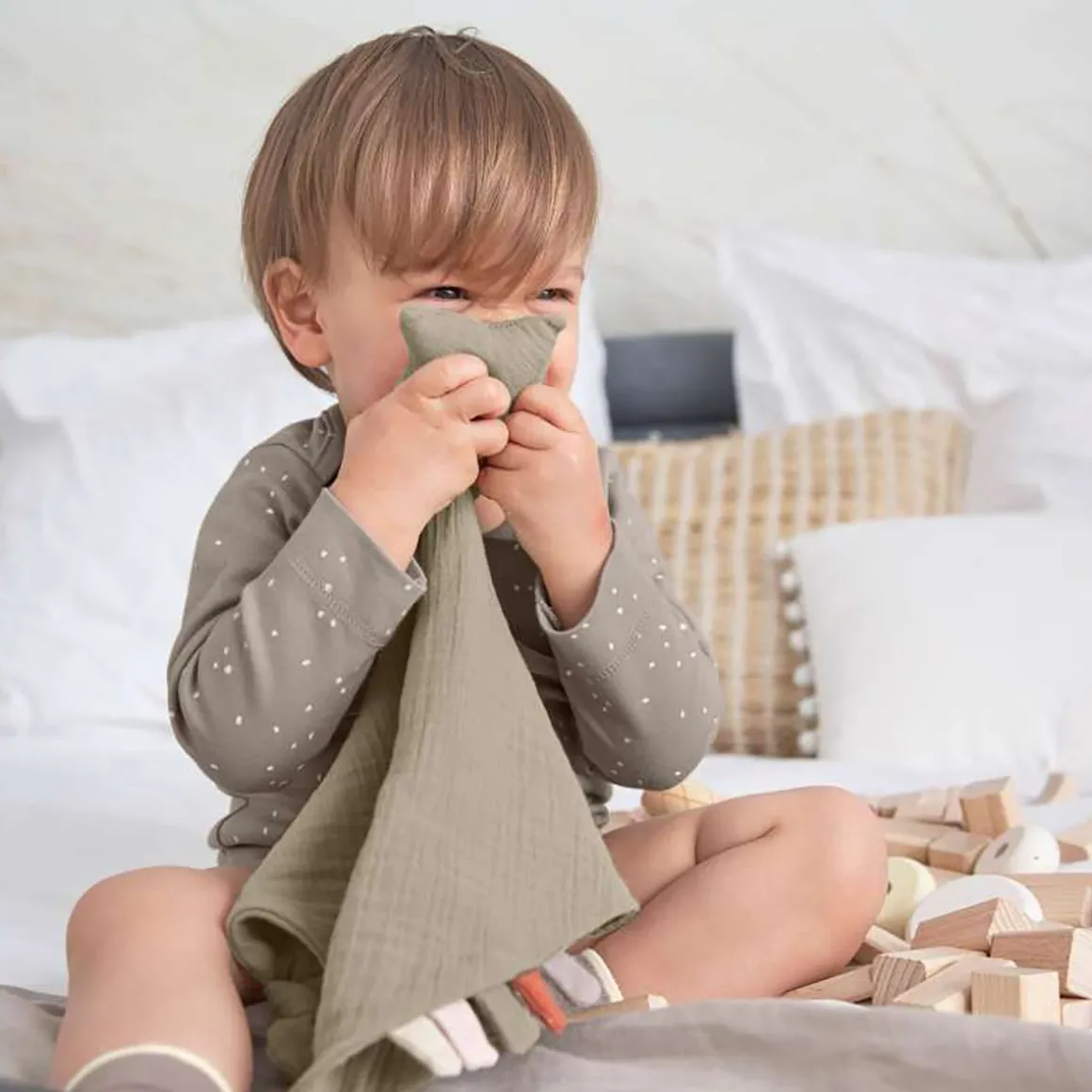A treasured companion from the very beginning: The soft GOTS-certified Muslin Baby Comforter serves baby as a cuddly toy, bedtime companion and substitute teat.