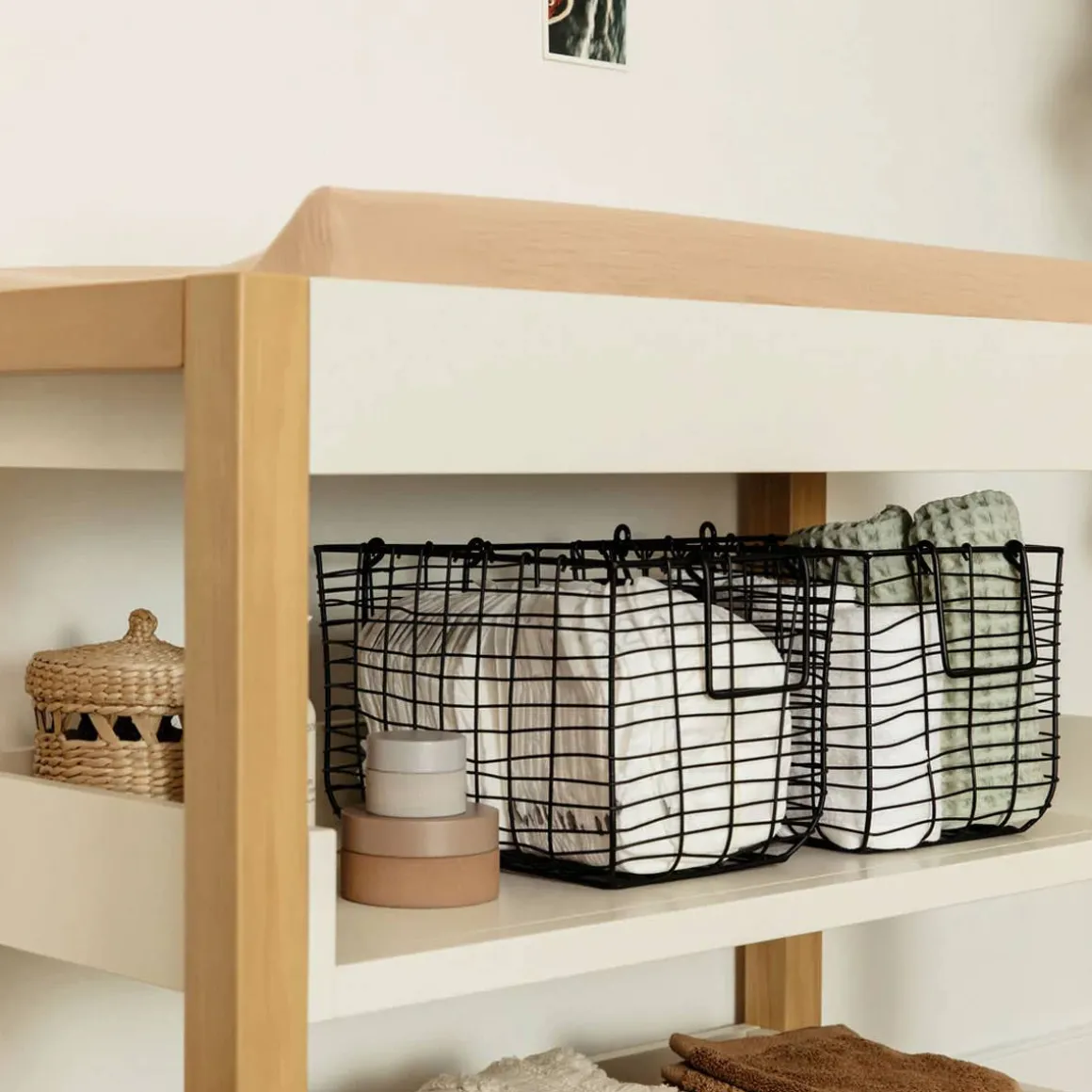 With clean lines and natural wood grain, the Nantucket Changing Table has a modern appeal of the classic coastal design that pairs perfectly with your Nantucket Crib. It features two spacious, open shelves to keep all your baby’s diaper changing needs within easy reach for convenient changings.