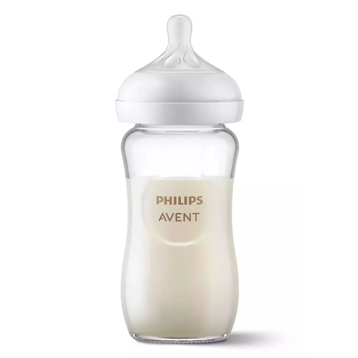Philips Avent Glass Natural bottle with the Natural Response nipple lets baby control the pace of the milk, like they do when breastfeeding. The nipples’ unique opening and tip only releases milk when your baby actively drinks. When pausing to swallow and breathe no milk flows. Baby can drink, swallow, and breathe using their natural rhythm, just like they do when breastfeeding. Easily combine breast and bottle feeding with a wide breast-shaped nipple with a soft feel that mimics the shape and feel of a breast; plus baby controlling the flow of milk like they do when breastfeeding.
