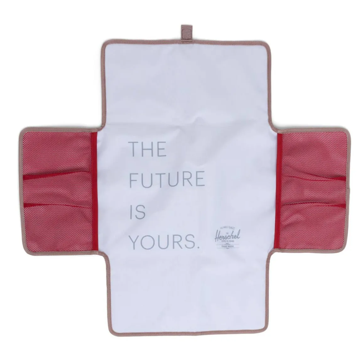 - Folding easy-wipe changing mat with reinforced mesh wing pockets