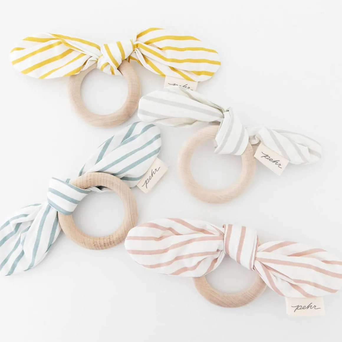 The On The Go Teether is designed to make travel with kids a little easier. This Teether is made from Sustainable FSC Maple Wood. Baby can drool, slobber and chew on the teether without worry. Just wash with warm soapy water when needed! The organic cotton bow includes a crinkly interior for added stimulation and can be taken off and thrown in the wash. Easy peasy!