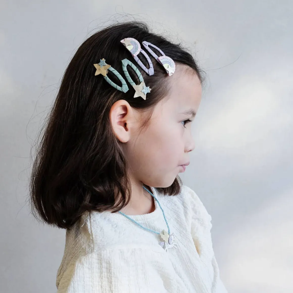 A seriously sweet new clip pack in the prettiest pastel tones! Two shimmering rainbows plus two layered stars secured to clips that will stay put through a full day’s play!