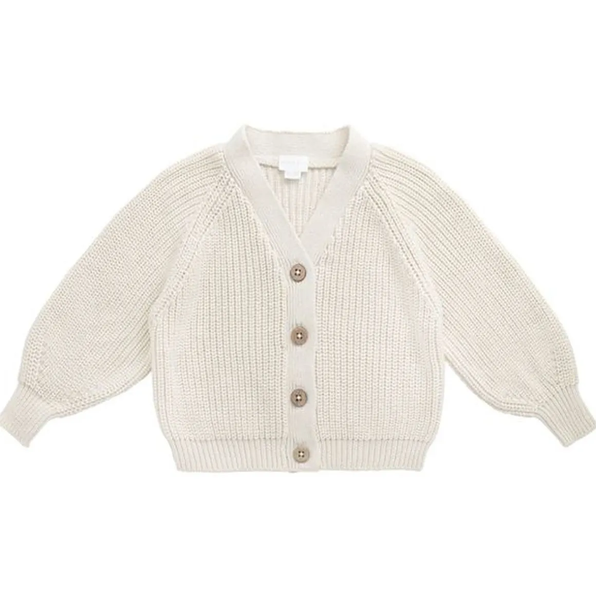 The Paloma Cardigan in Vanilla is a timeless layering piece designed to keep your little one cozy and stylish. Featuring a classic V-neck silhouette, ribbed cuffs and hem, and delicate coconut buttons, this cardigan is crafted from 100% Cotton for breathable warmth and everyday comfort.