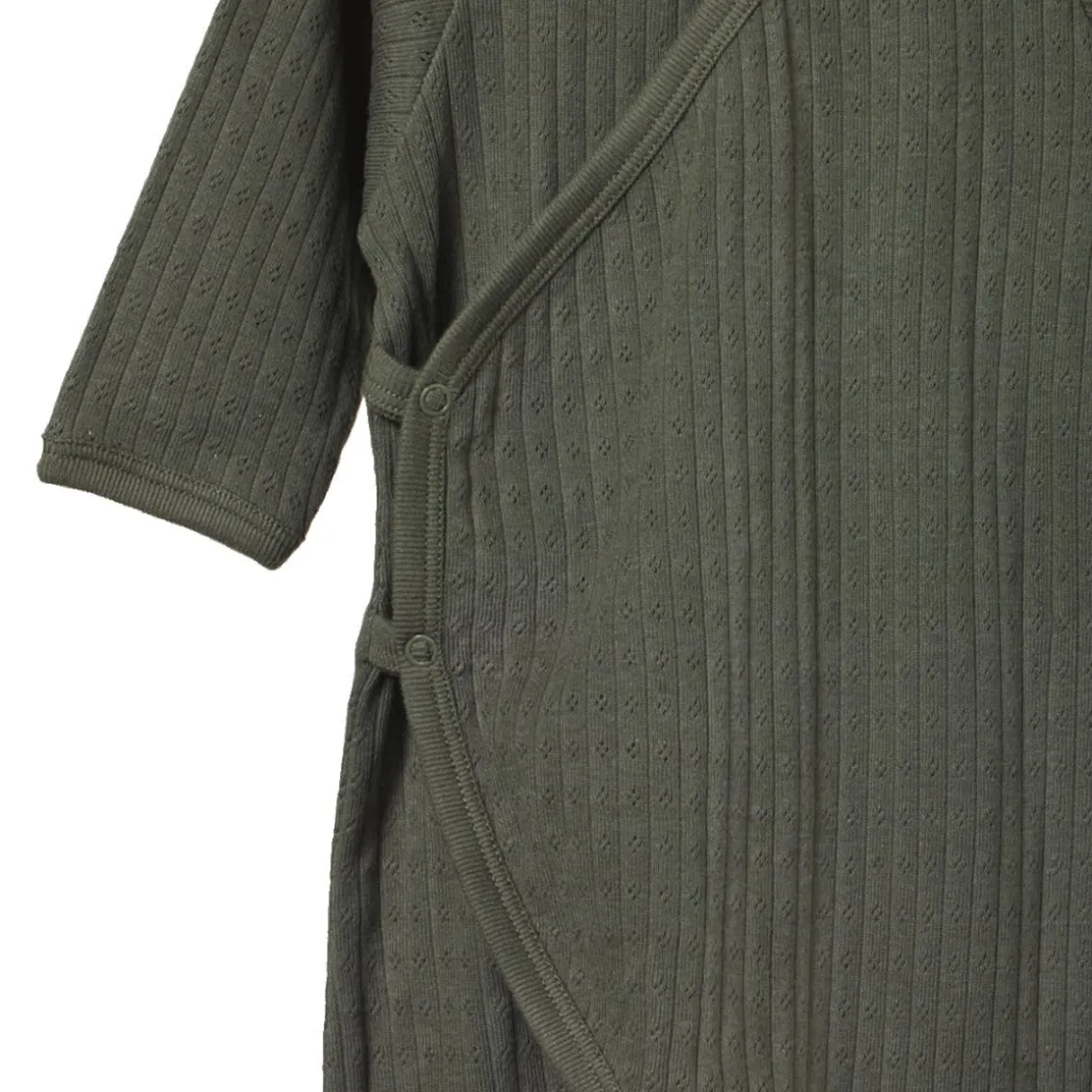 Made in beautiful pointelle fabric, it has a nostalgic quality and is super soft and stretchy. This delicate fabric is perfect for the first few weeks and months of life. To minimise shrinkage, this fabric has been pre-washed.