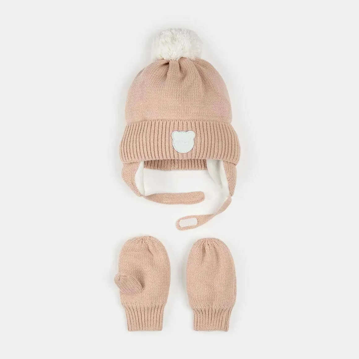 Keep your little bundle of joy toasty on icy adventures with this cozy hat and mittens set. Made from a soft sweater knit and lined with a warm recycled polar fleece, this set is the perfect companion for winter’s chilliest days. The hat’s ear flaps and chin straps keep everything in place and protect them from the wind, and the mittens keep tiny hands warm while experiencing the season’s most magical moments.