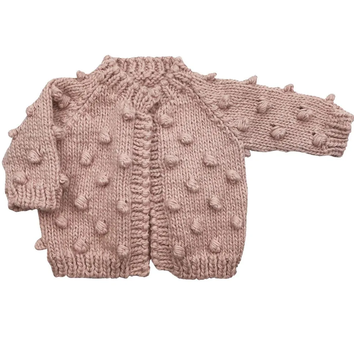 This classic sweater features a single-button cardigan-style closure and an all-over popcorn knit that perfectly matches our and popcorn hats.