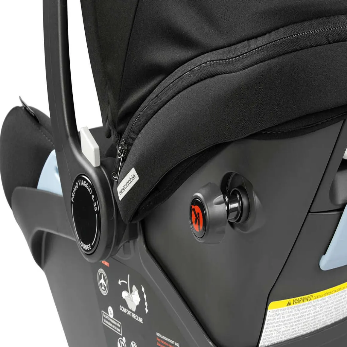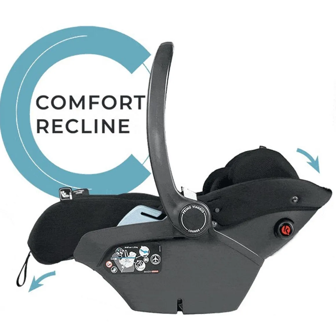 - Comfort Recline: Comfort Recline function allows the backrest to recline into 3 positions and the leg rest to extend when used on a stroller.