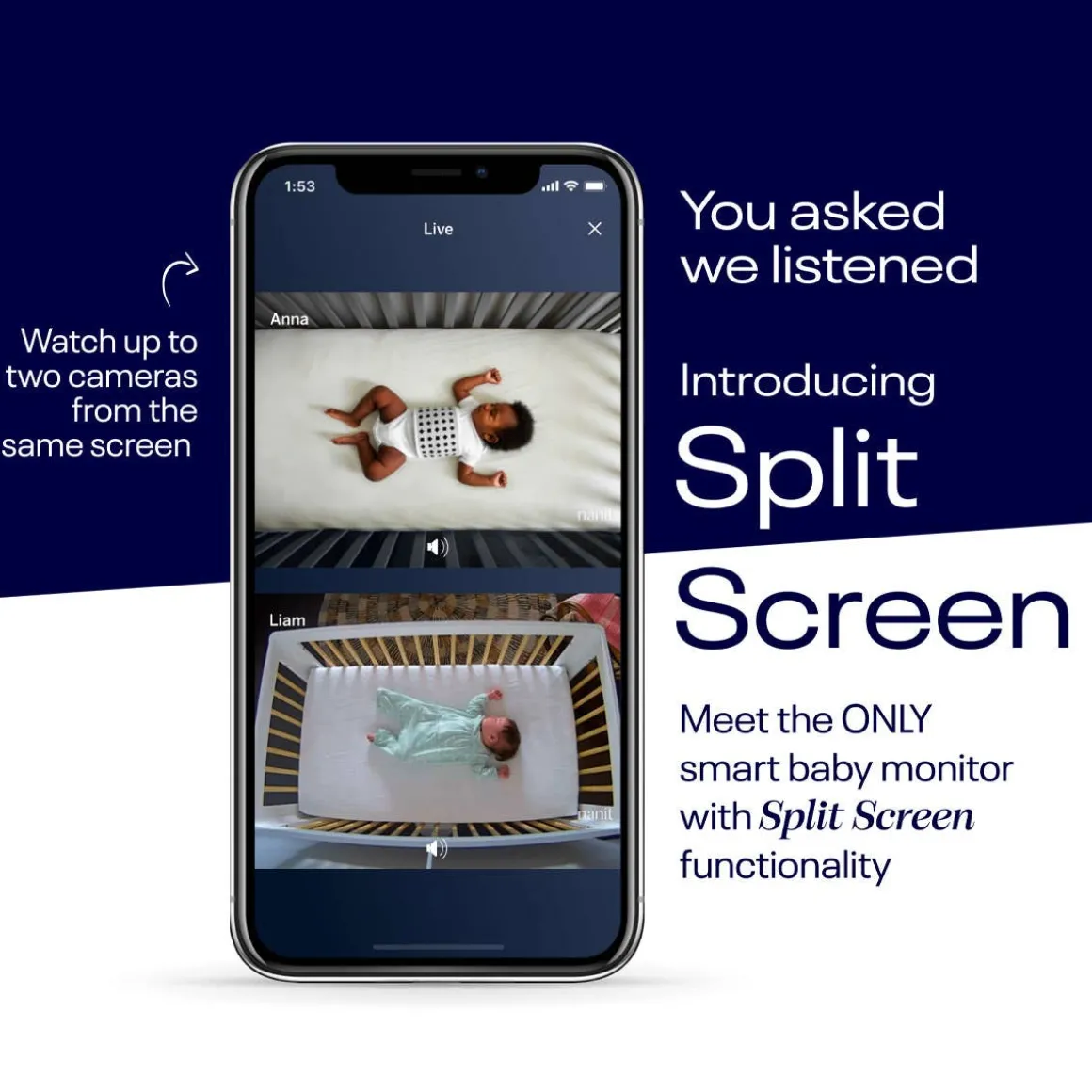 - The only smart baby monitor with a Split Screen feature that allows users to see + control two cameras simultaneously in app