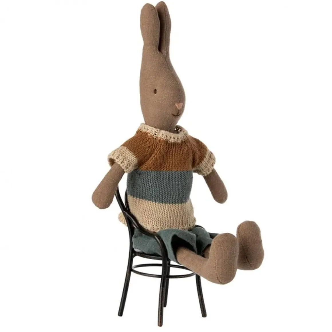 A classic rabbit made of soft natural linen fabric that gives a lovely hand feel and look. Size 2 rabbits fit into the Maileg dollhouse and all furniture size Mini and Miniature. Check out the clothes collection to expand the rabbit’s wardrobe.