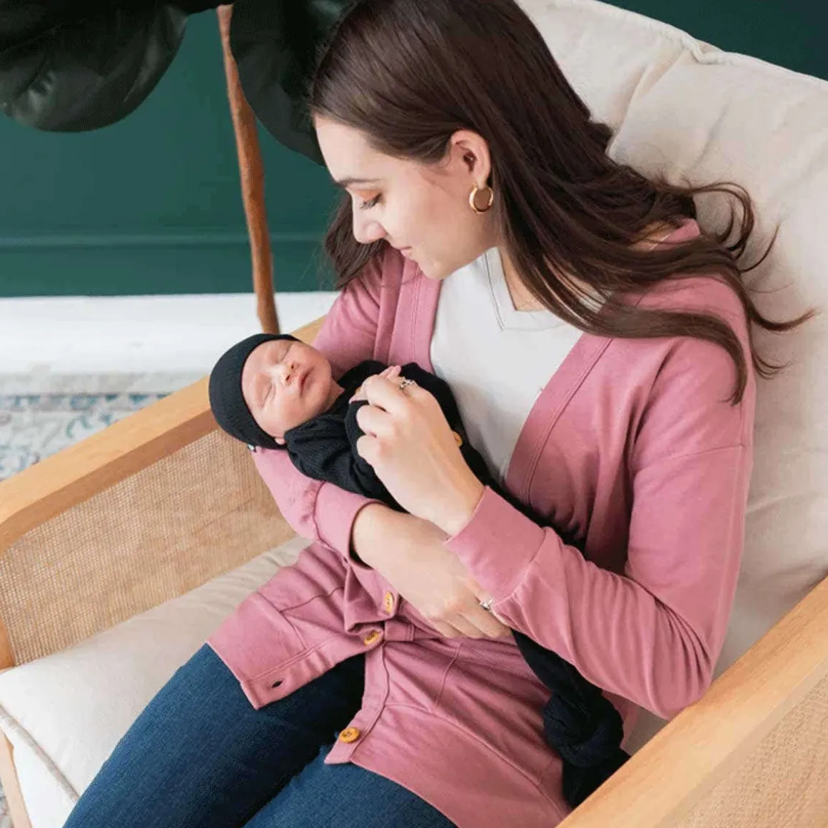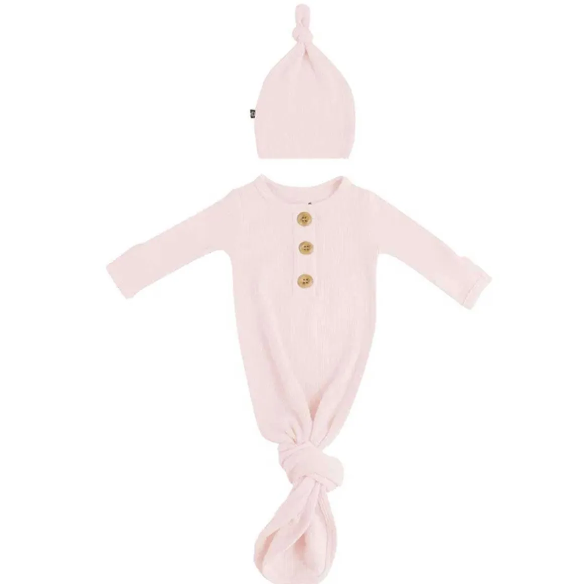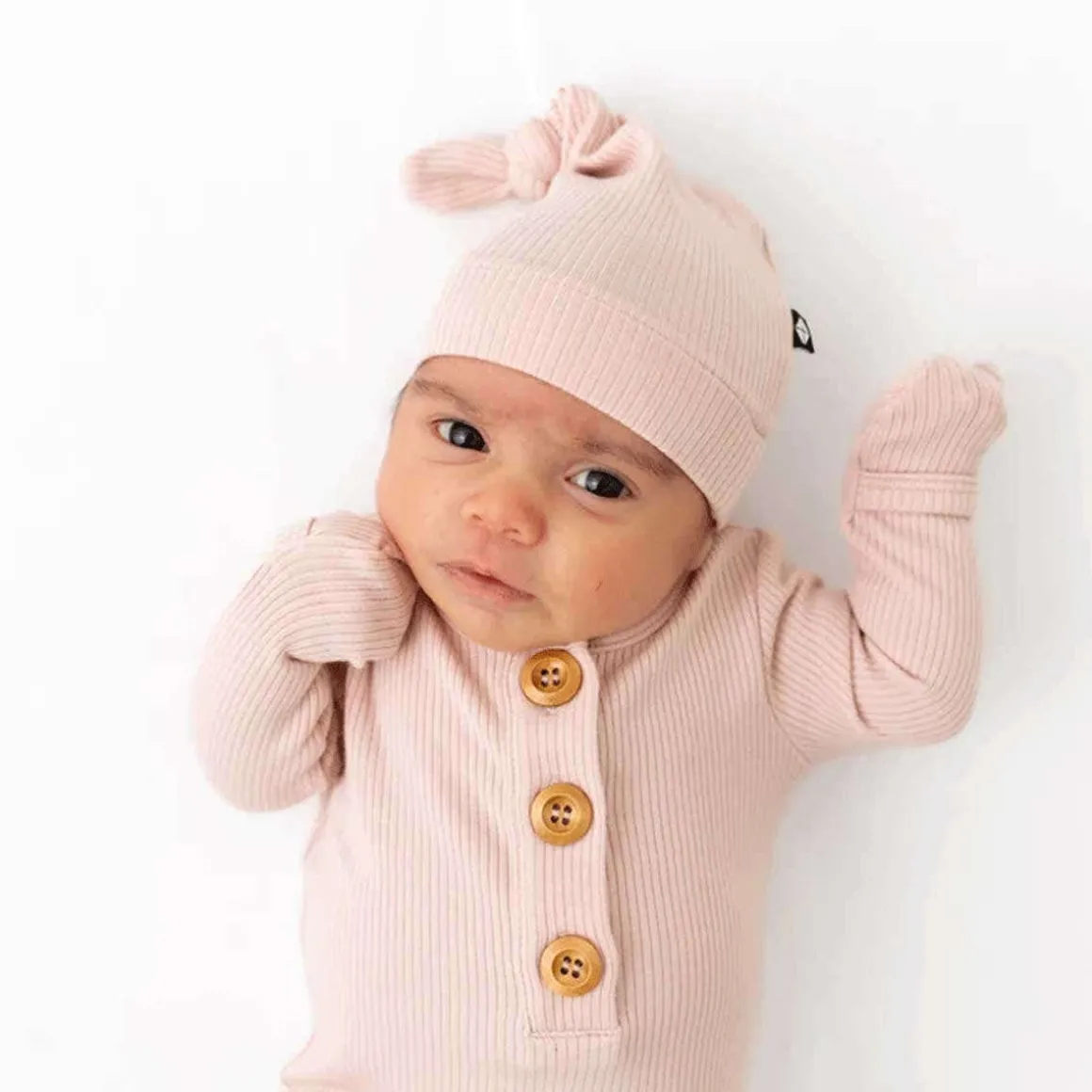 This all-in-one outfit is the softest newborn essential designed with both you and your baby in mind. Crafted from soft, stretchy ribbed bamboo, this gown features a tie bottom for easy diaper changes and comes with a knotted turban for the finishing touch to a classic look.