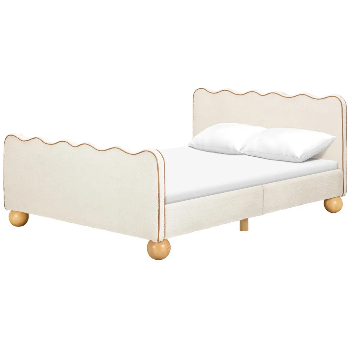 With its eye-catching wave detailing and contrasting stylized pipe, the Rizo Full Bed brings standout design and everyday comfort to your kiddo’s room. Perfect for growing dreamers who are ready for more space, this upholstered full bed is wrapped in soft, high-performance fabric that’s built to last through every leap, sprawl, and storytime snuggle. The sturdy frame and removable ball feet offer an adjustable height that adapts to your child’s needs, and their evolving sense of independence. For added safety, add optional guardrails on either side for extra peace of mind.