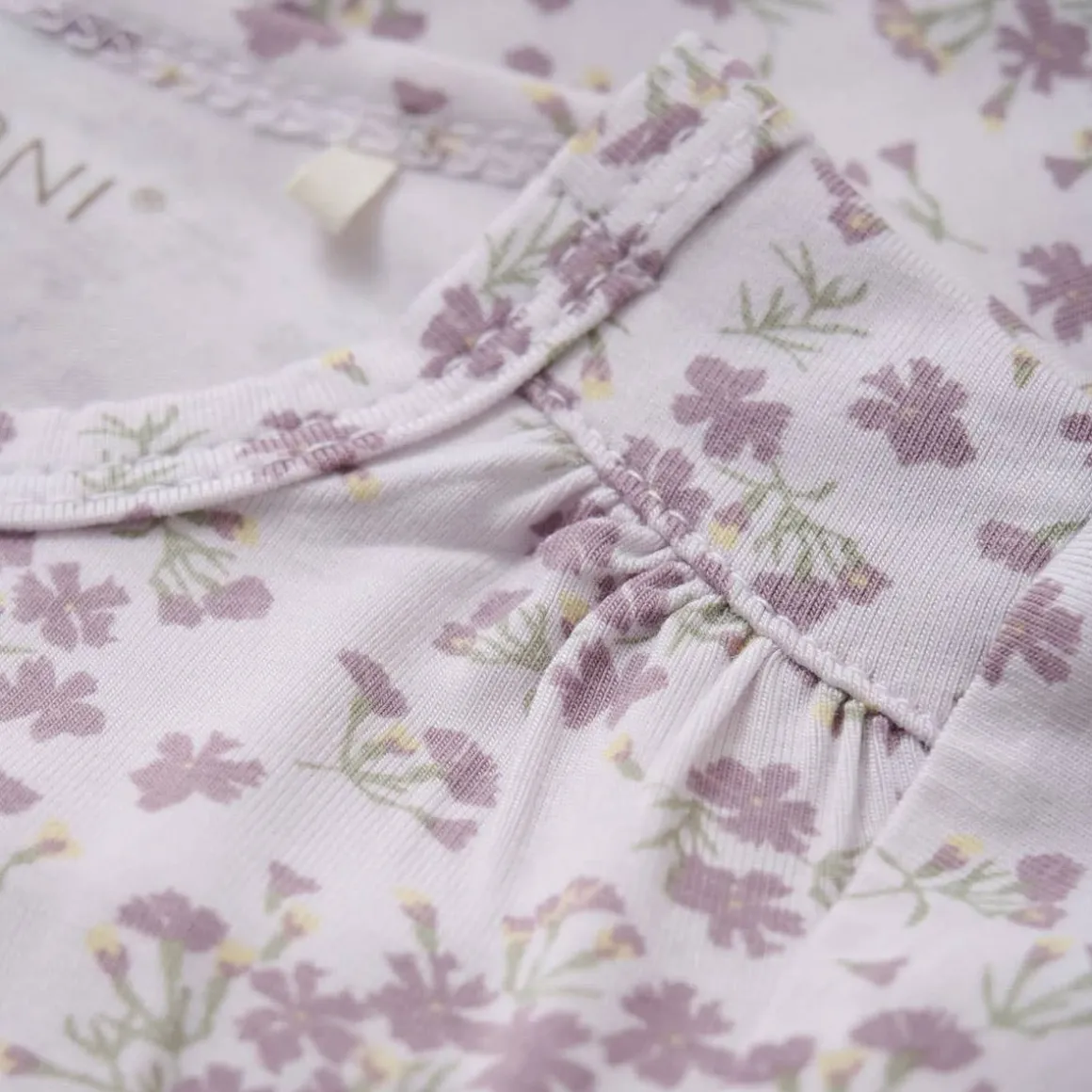 Short-sleeved body with all-over-print. This body have snap closure at the shoulder and between the legs.