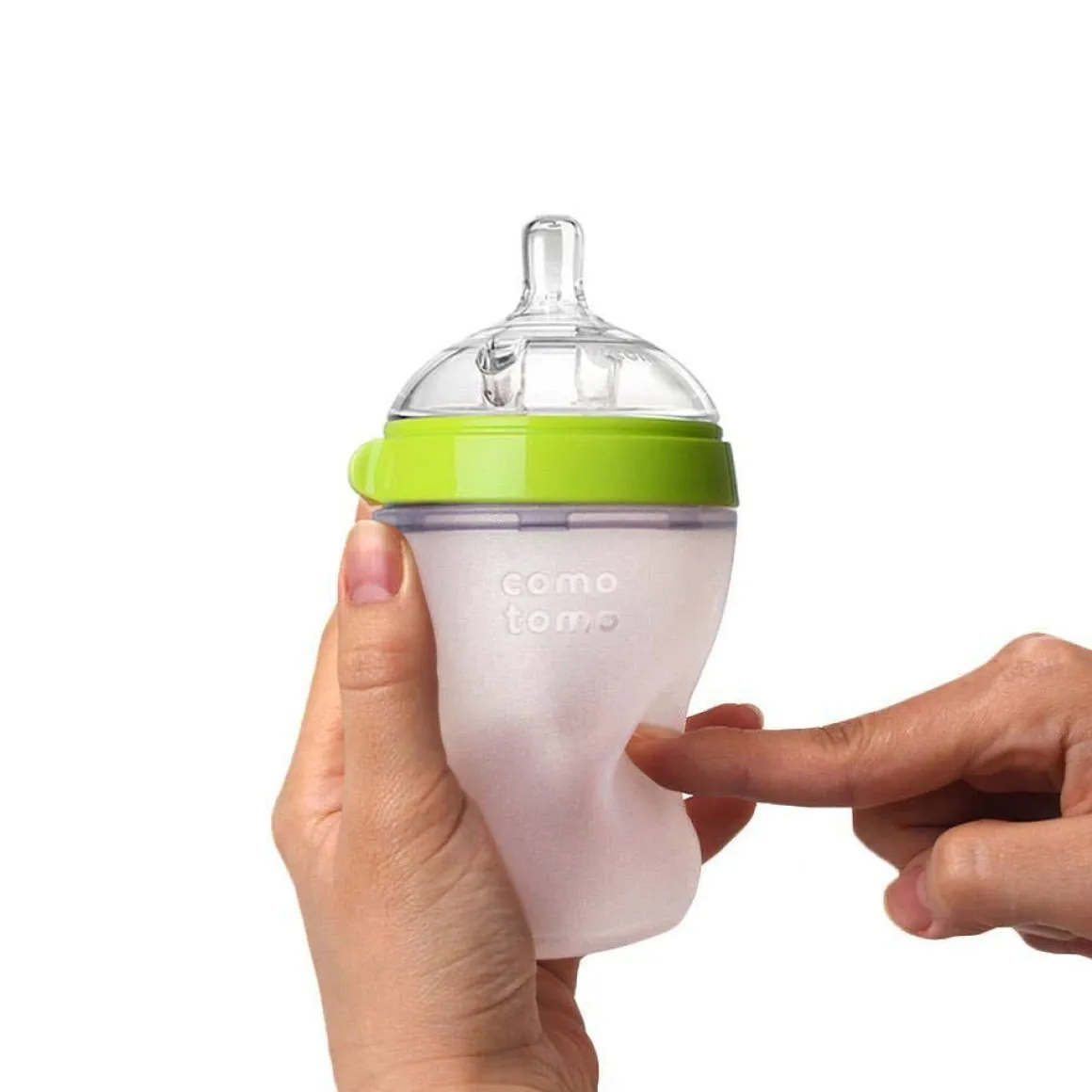Comotomo Baby Bottles feature innovative and sensible design to most closely mimic natural breastfeeding. The naturally shaped, soft, silicone nipples are ideal for babies who have trouble transitioning from nursing to bottle-feeding. Your little one will love to hold onto the skin-like, soft and squeezable body that is like no other bottle in the world. And you will fall in love with our wide-neck design for brushless, stress-free, cleaning bliss!