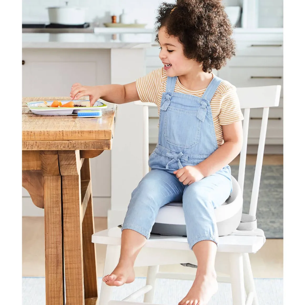 Skip Hop’s modern 2 stage Booster Seat adapts to your child’s stage and age for years of use. Sleek and space-saving, the innovative design provides a dining booster, tableside booster and finally a big kid chair. Smooth wipe-clean surfaces and more user-friendly features make this a mealtime must-have.