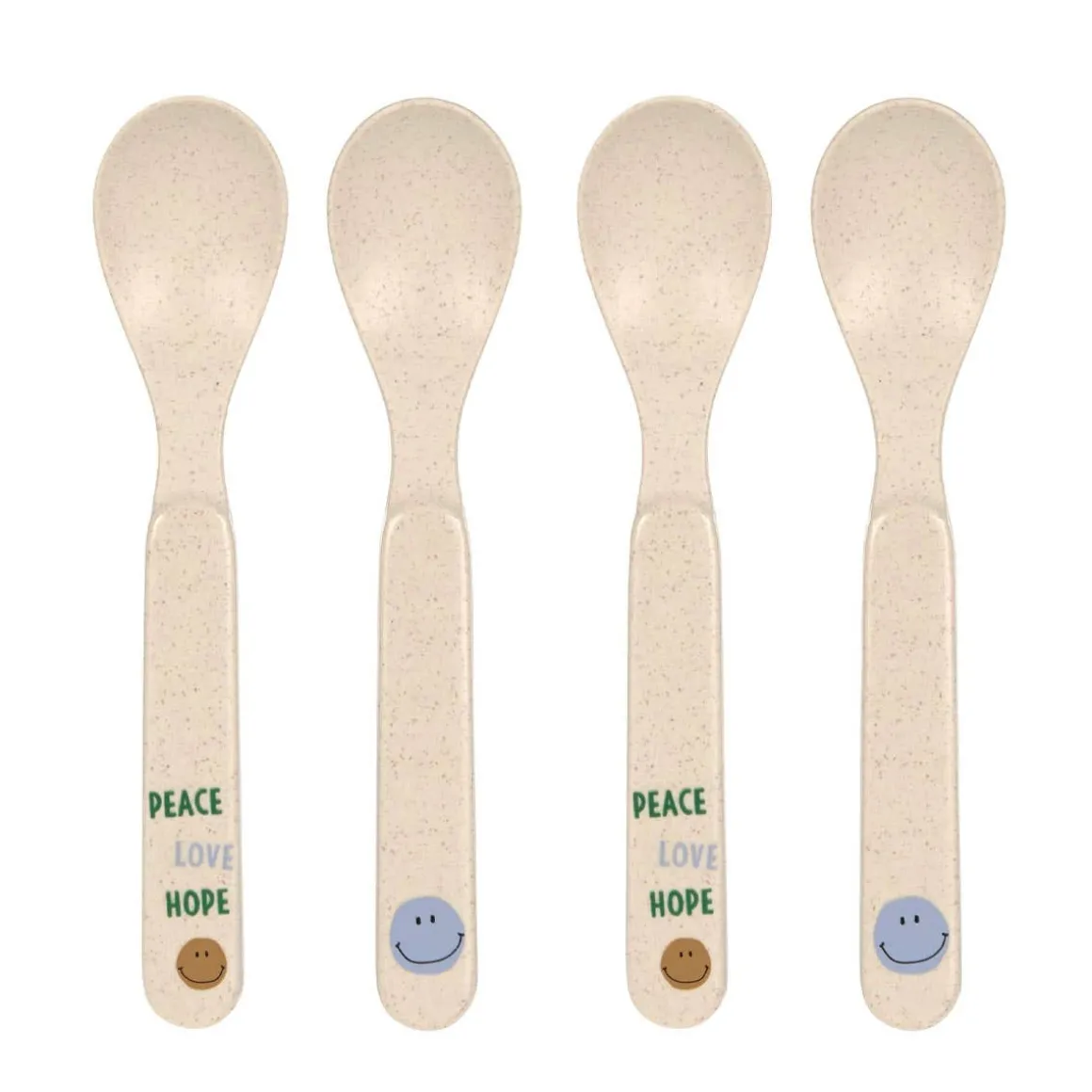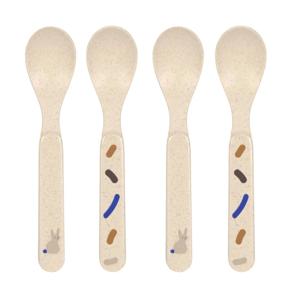 The children’s tableware collection by LÄSSIG includes a set of four spoons decorated with popular prints