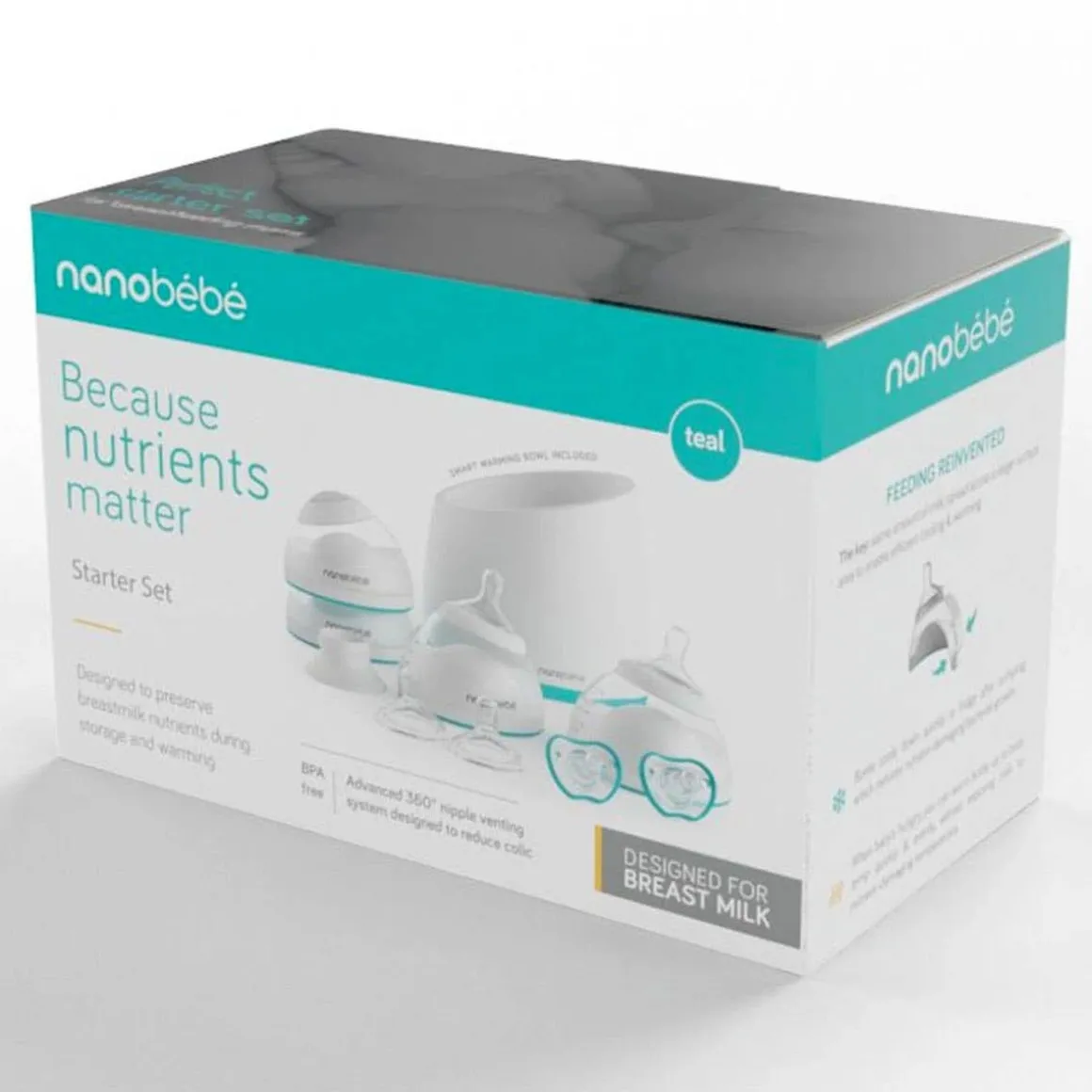 The Nanobébé starter set includes some of the most innovative essentials: Breastmilk Bottles to help preserve breastmilk nutrients during storage and warming, the nanobébé nonelectrical Smart Warming Bowl for quick and even warming of breastmilk, as well as nanobébé’s Flexy pacifiers.