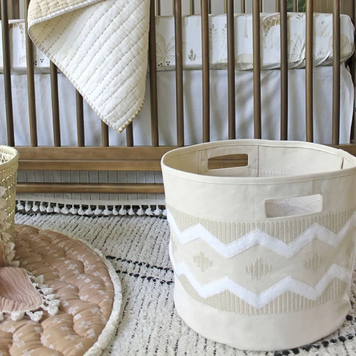 When it comes to keeping your nursery organized, great storage solutions are essential. This Storage Bin is a lovely, neutral organizational touch to any nursery space. The bin can hold everything from diapers to toys, to books, to blankets. The possibilities are endless! It will also pair beautifully with many of Crane baby bedding sets as well as nursery wall art.