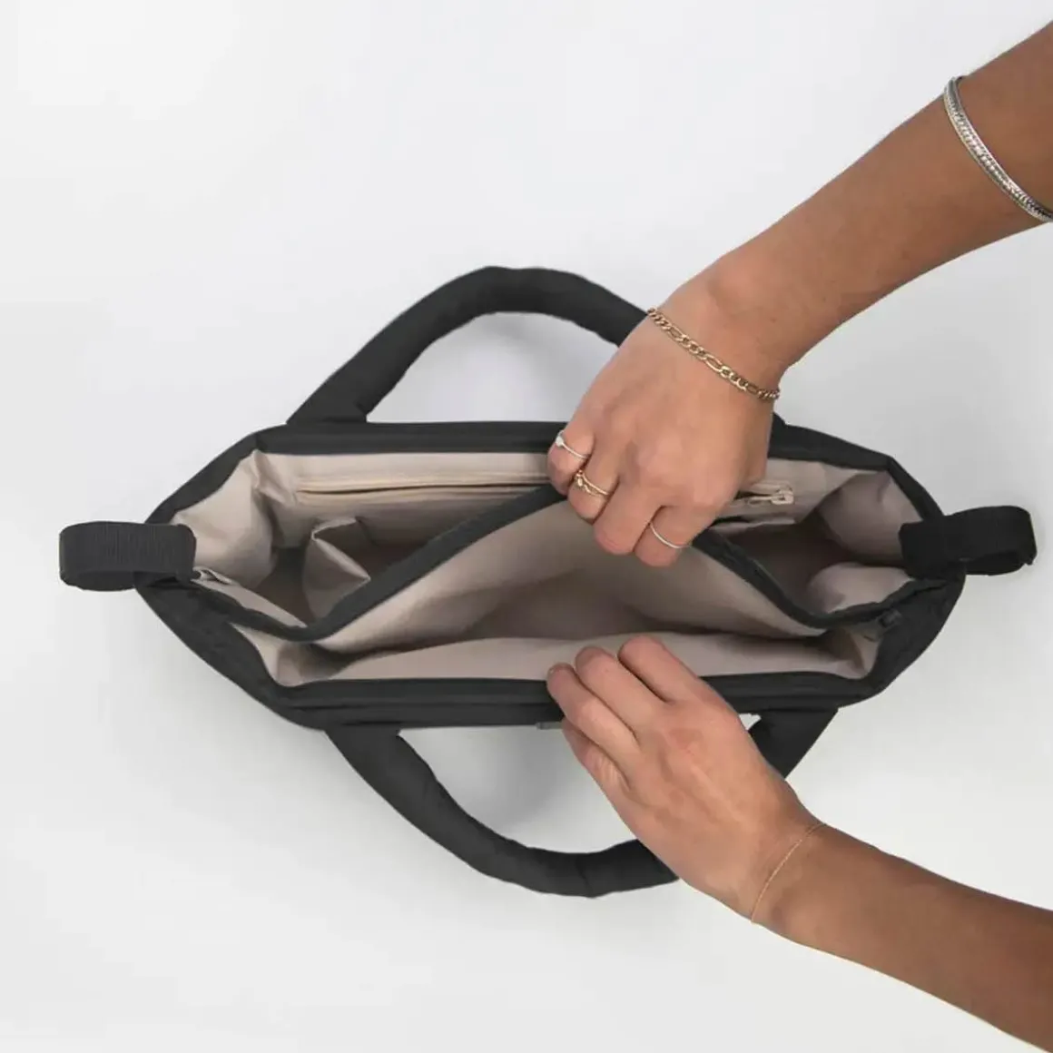 7 A.M Enfant deluxe stroller organizer attaches to all stroller bars, with open-access compartments for baby bottles, diapers, wipes, snacks and more. Designed with a large zipper pocket to store your personal items. Use the top handles to easily grab all baby essentials while on-the-go.