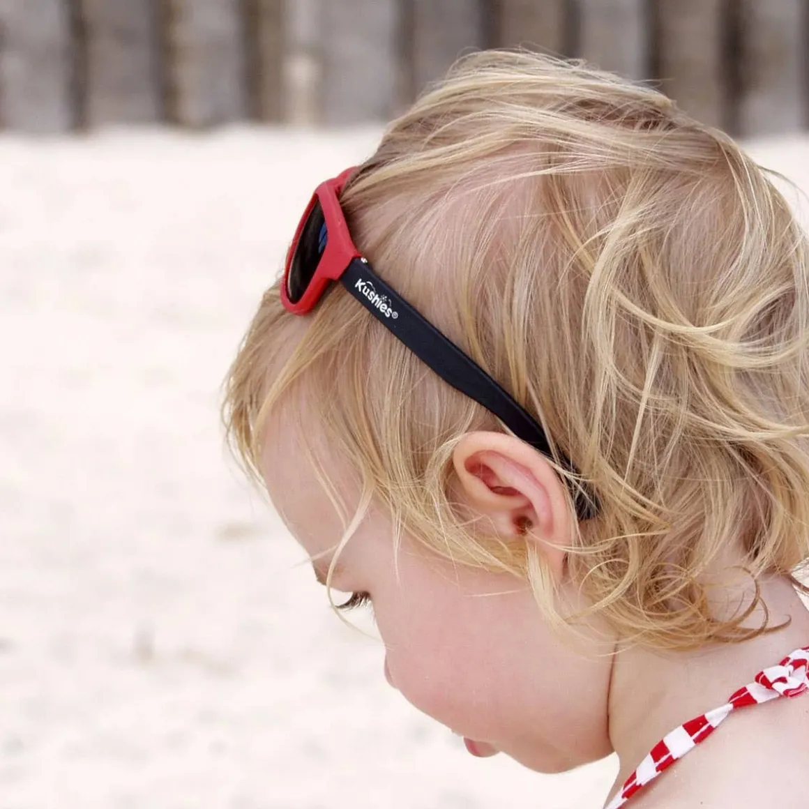 Keep your child’s eyes protected from the sun year round with Kushies sunglasses.