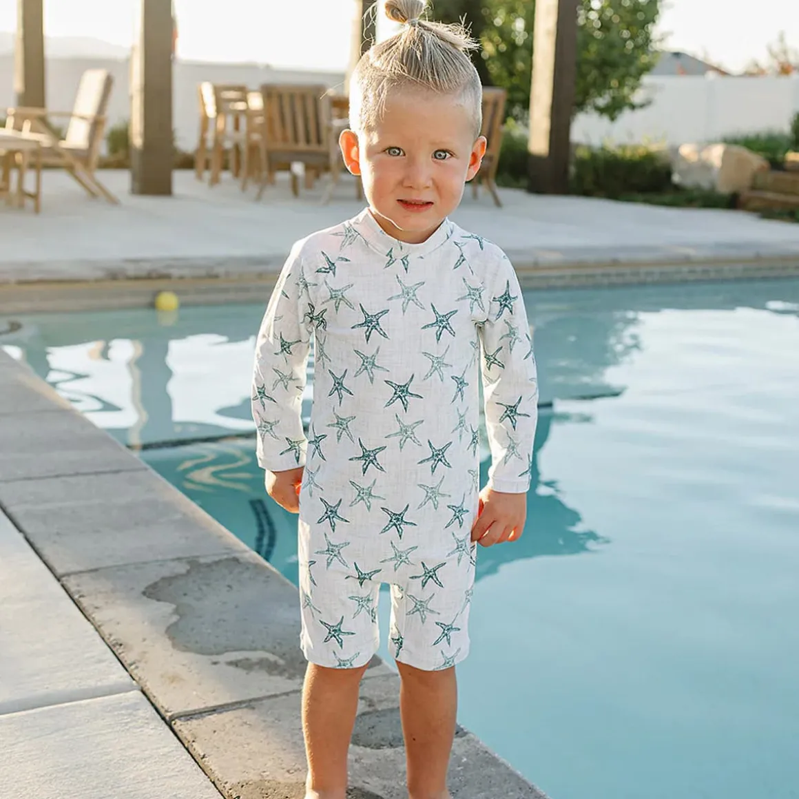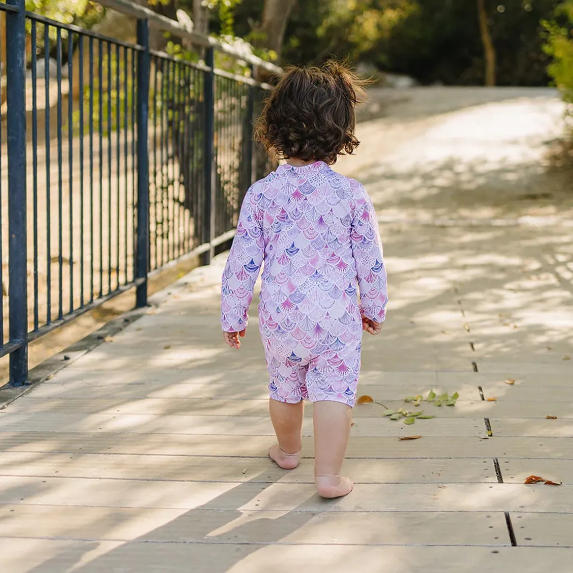 Keep your child safe from the sun without compromising on style! These popular sunsuits combine the full protection of a Rash Guard with play friendly shorts into a convenient one piece swimsuit. The lengthened YKK zipper ensures these suits are easy on and off, with zipper pulls perfectly designed for little fingers. Potty breaks are a breeze! These suits are fully reversible allowing for zipper wear at the front or back, and help empower your little ones to dress and undress themselves!