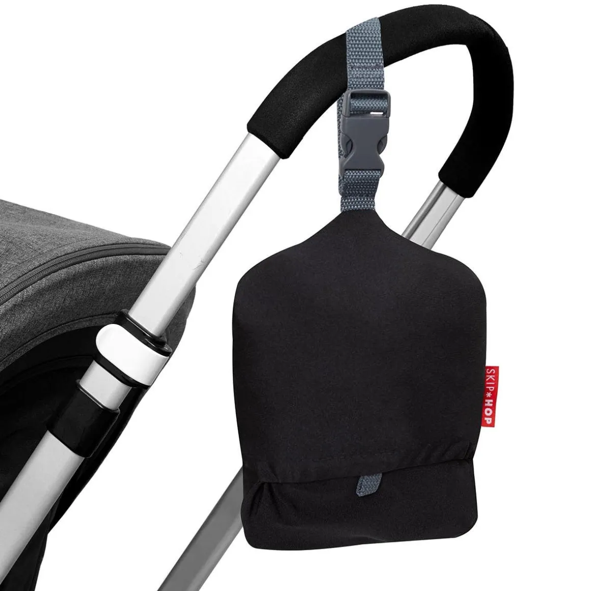 - Loop with buckle closure allows the pouch to hang from stroller or bag
