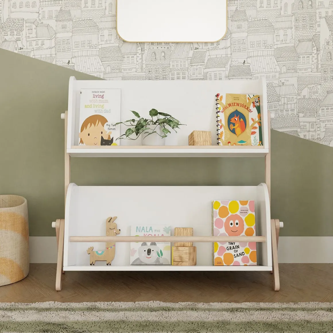 Stop sweeping those playroom treasures under the rug (or the bed). Let babe’s toys, books and buddies take center stage with the Tally Storage and Bookshelf. A modern and clean design, this bookcase is equal parts style and function with a display shelf for books and spacious storage cubby below. When you got it, flaunt it.