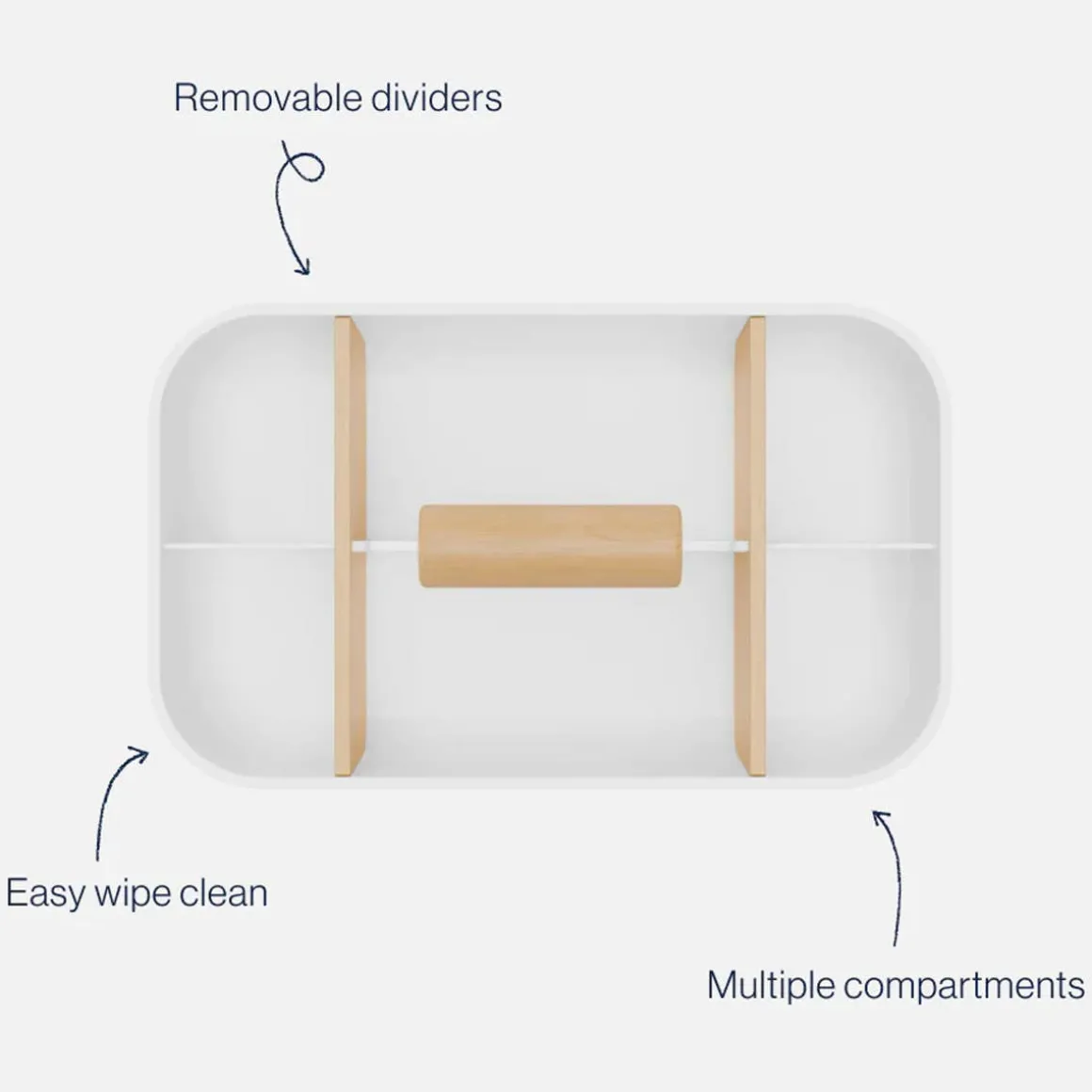Get (and stay) organized with this chic, multipurpose caddy. The Caddy’s modular design features 2 removable dividers giving you the option for 3 different configurations. Whether you’re storing craft supplies, snacks, or diapers — Lalo’s got you.