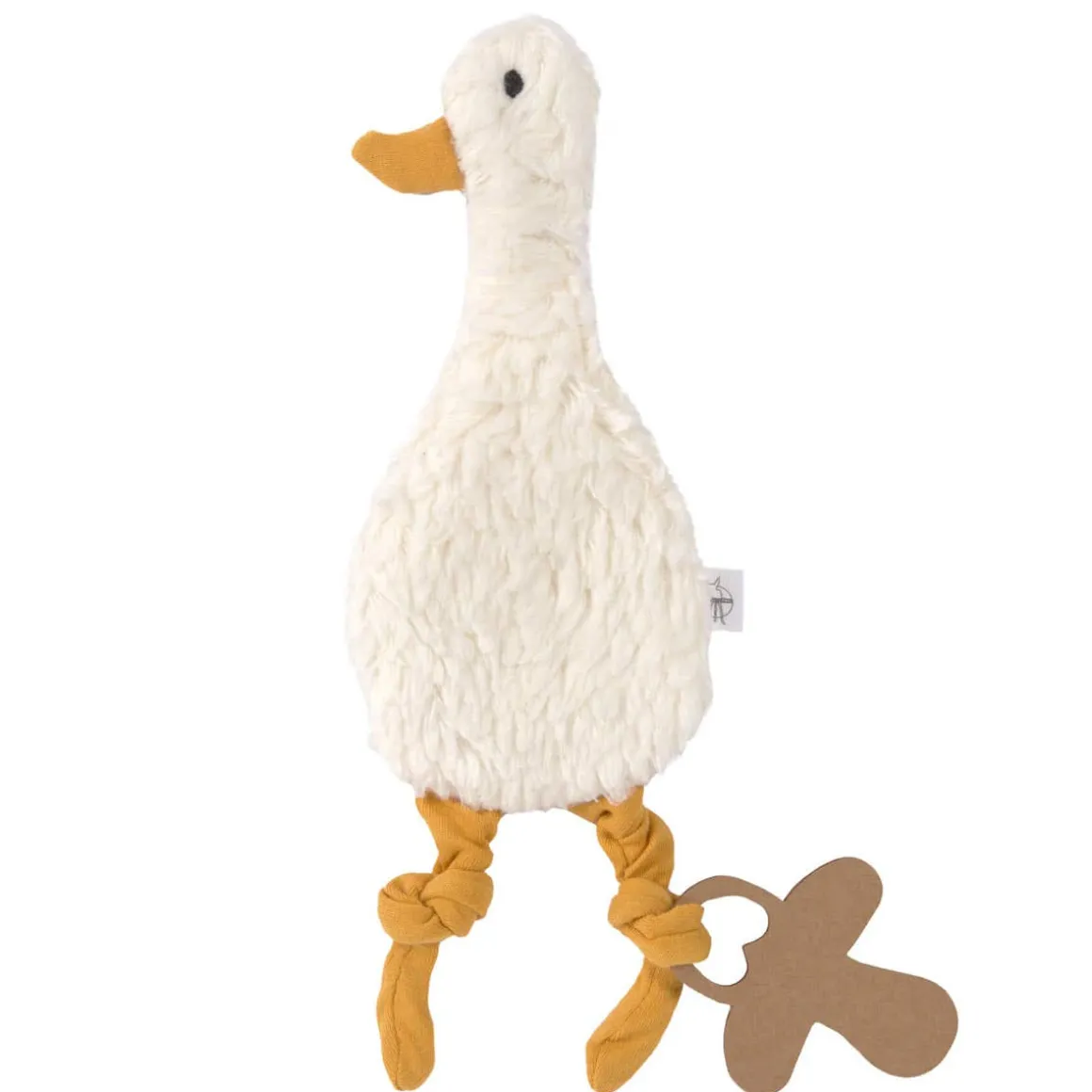 The waddling goose and the fluffy sheep are silent companions that don’t squeak or make a rustling noise. They invite the young ones to cuddle up, grasp and touch them with their soft, fluffy bodies and little stretchy legs. Thanks to the various structures, colors and shapes the comforter trains the first attempts at grasping and promotes creativity and fine motor skills.