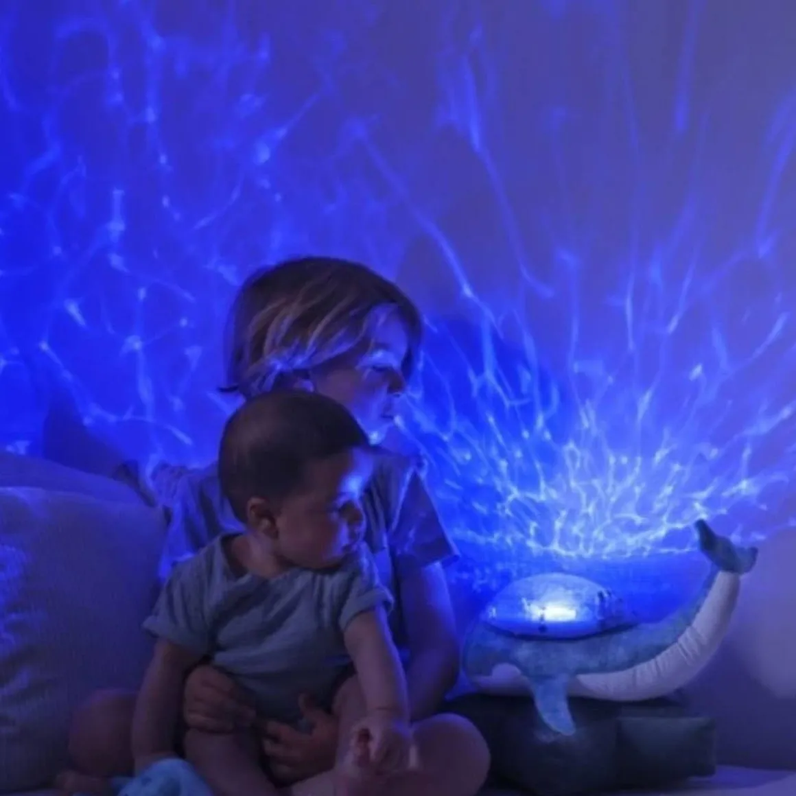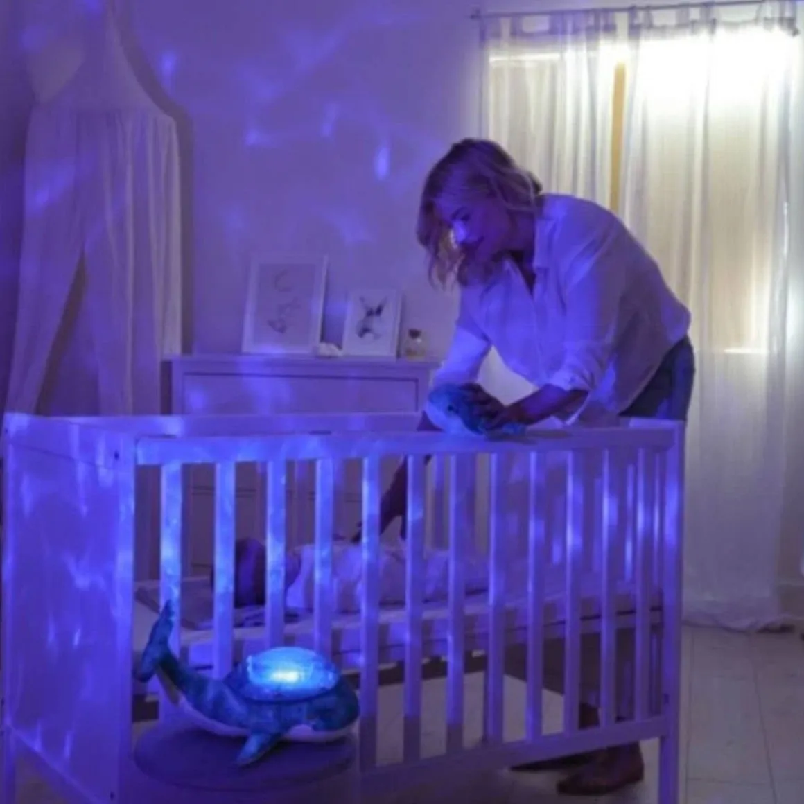 - GENTLE SOUND & LIGHT: Projects underwater light effects along with a soft melody or ocean waves.
