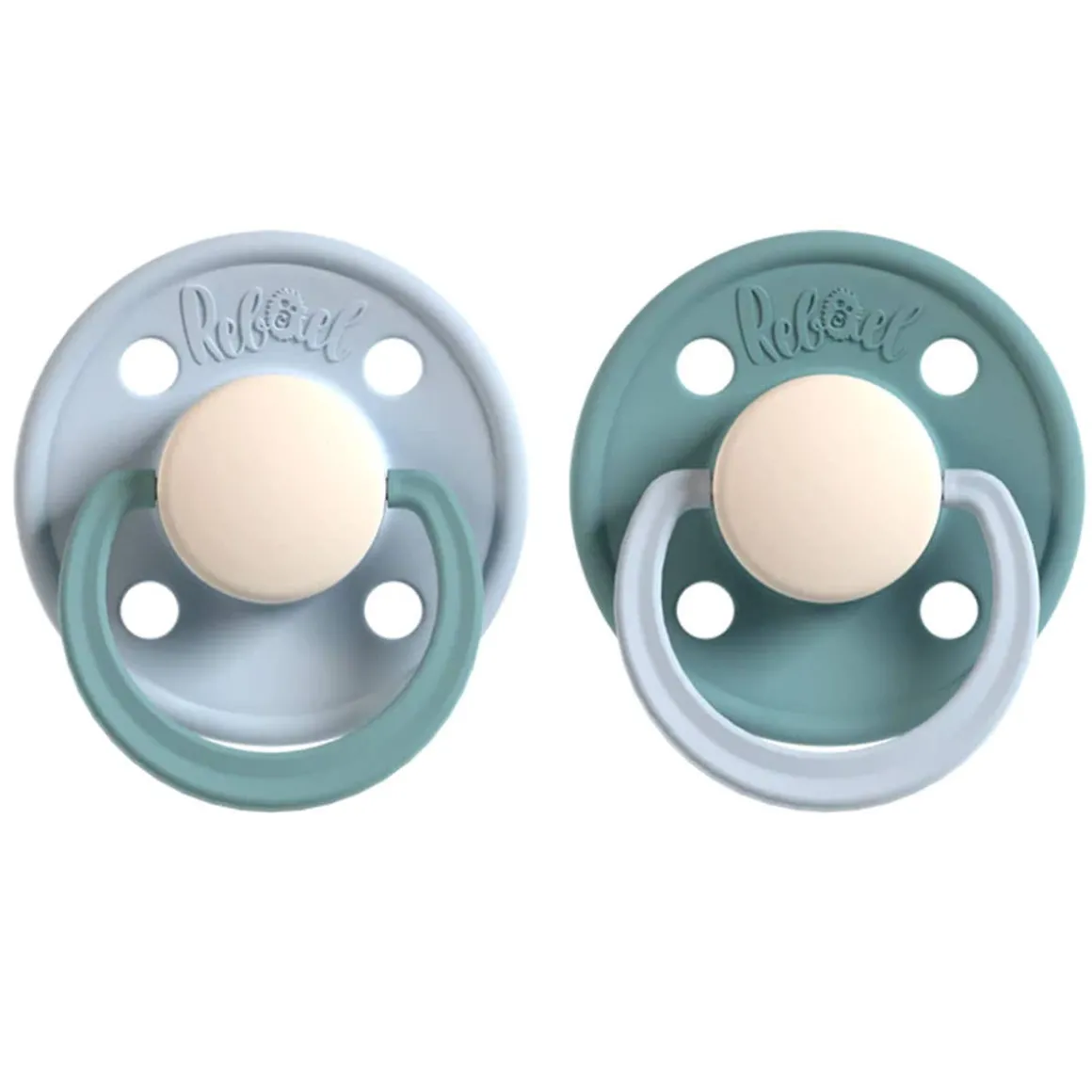 Rebael pacifiers with round nipple in 100% natural rubber latex, without added chemicals. Match each outfit with a pacifier from Rebael. Rebael pacifiers have a nipple made of natural rubber, also called natural rubber latex. In Rebael pacifiers, the natural rubber is allowed to dry naturally, without added chemicals. This means that the manufacturing process takes a little longer but provides cleaner, more durable and safer pacifiers.