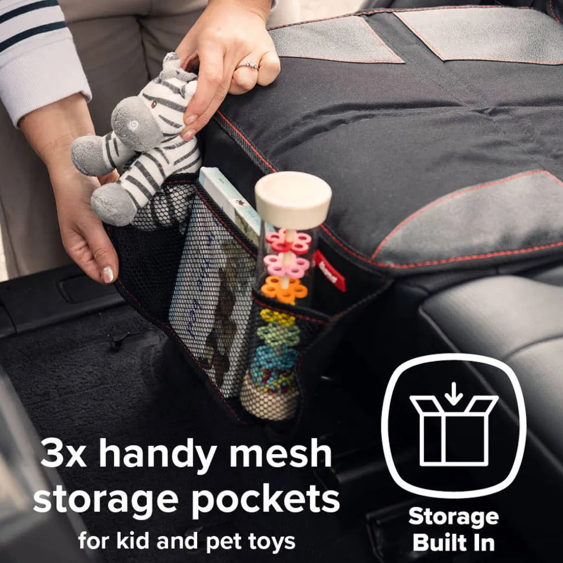 Ultra-Mat was designed to cover the entire vehicle seat to keep car-seats firmly installed without causing harm to the upholstery, protecting both car and baby. Made with Pentalock technology, a 5-layer high strength material that resists dirt and liquids for easy clean-up once the journey is over. Ultra Mat also features 3 handy mesh storage pockets to give a little extra storage for travel essentials. The cushioned, full-seat design and high-density foam panels protect upholstery from indentations, scratches and scrapes. Designed for all that life can throw at it with highly durable, water resistant fabric so you can simply wipe down at the end of the day for the ultimate in in-car clean. Designed to work with seat belt and LATCH/UAS/isofix installations and Diono crash tested to help provide the best safety possible for your child.