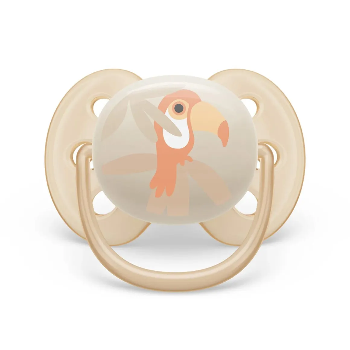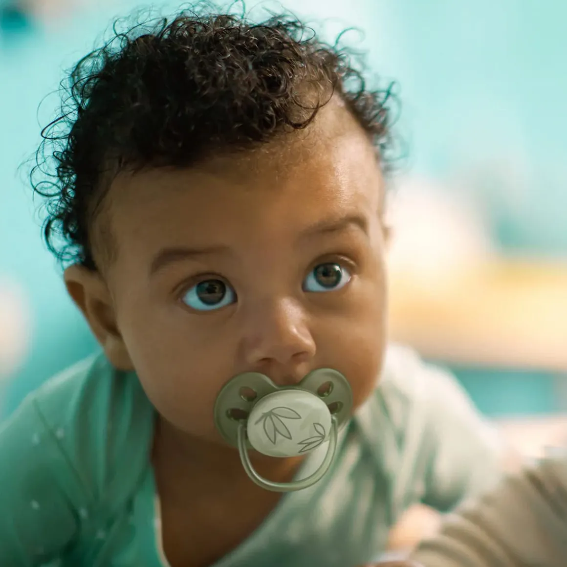 The Philips Avent Ultra Soft pacifier for babies 0-6 months is designed with a soft, flexible shield for fewer skin marks and less skin irritation. This makes it a more comfortable choice for baby. 98% of babies accept the nipple. It comes with 2 pacifiers packaged in a sterilizer / carrying case that can be used to sterilize them with water in the microwave.