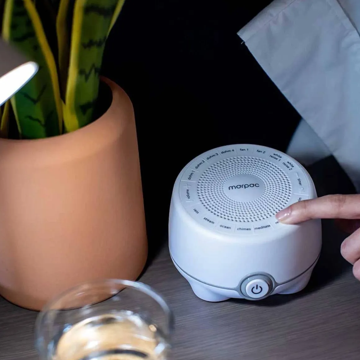 - EFFECTIVELY MASKS NOISE: Beloved by generations since 1962, Yogasleep by Marpac is the trusted leader in white noise machines, and created signature sound – the soothing ambient sounds of rushing air. That sound that’s helped millions experience better sleep for generations is now available in this light and portable design, along with 16 additional sound options. Choose from simple white noise or select melodies designed to relax the body and calm the mind. The Whish effectively cancels out noises that may disturb or distract for improved sleep and concentration.