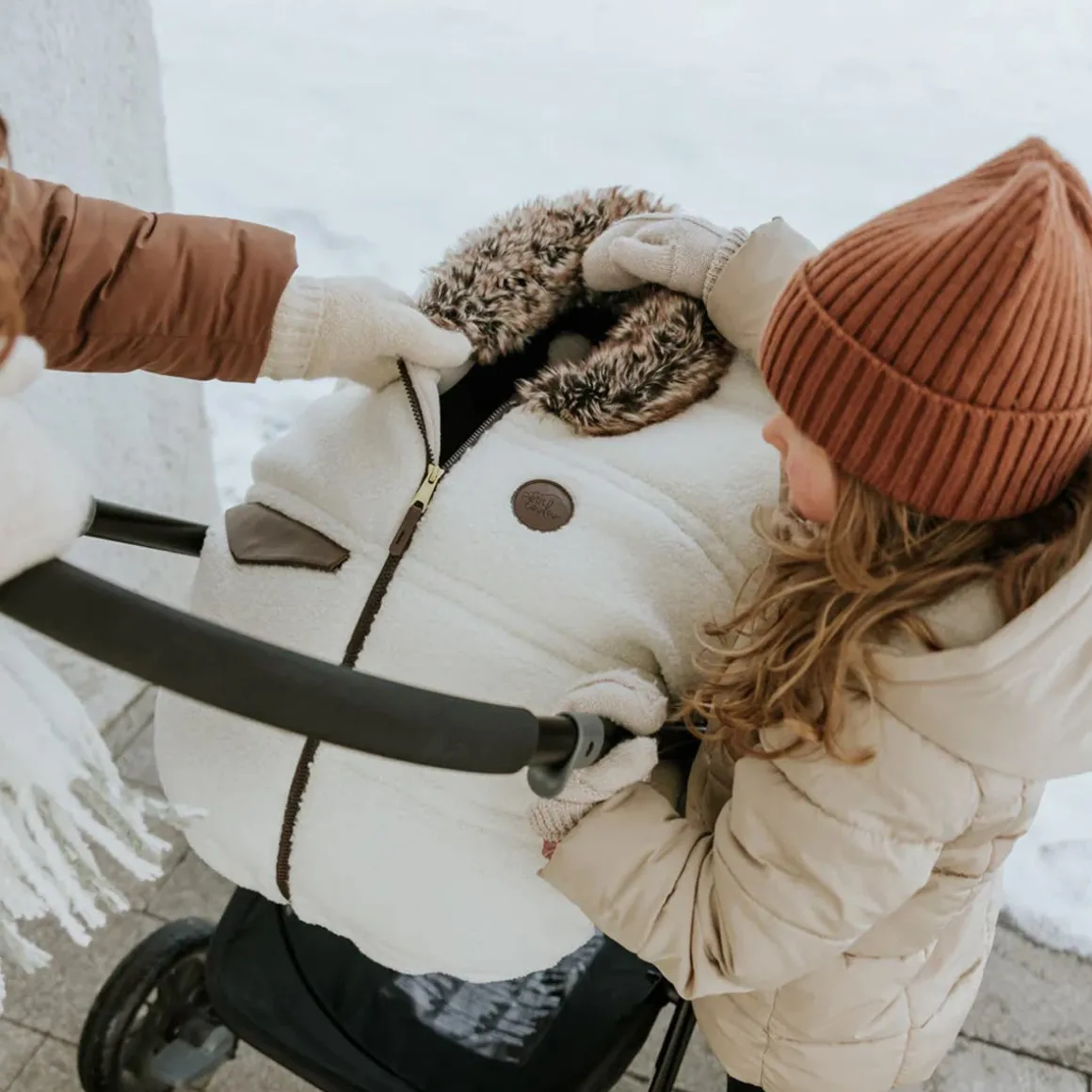The sherpa winter car seat cover is inspired by the outdoor excursions of Western Canada, adding a touch of style and adventure to every outing. This essential accessory for parents of toddlers is easily removed thanks to its elastic base, making it quick and convenient to use.