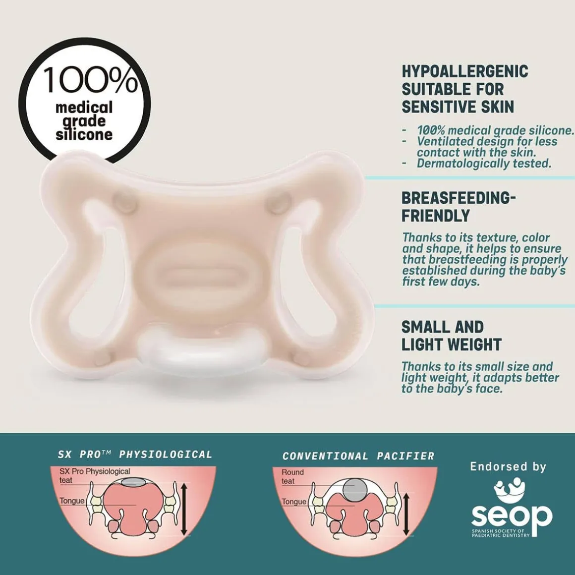 - With revolutionary SX Pro™ Physiological nipple, designed to help the tongue remain in the same natural position as when the baby is breast-feeding, aiding in correct positioning of the mouth, tongue & jaw