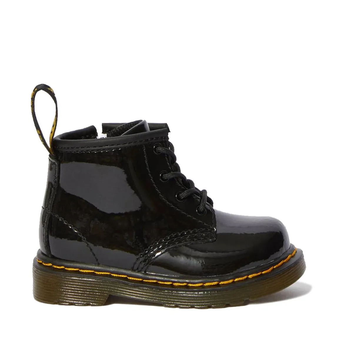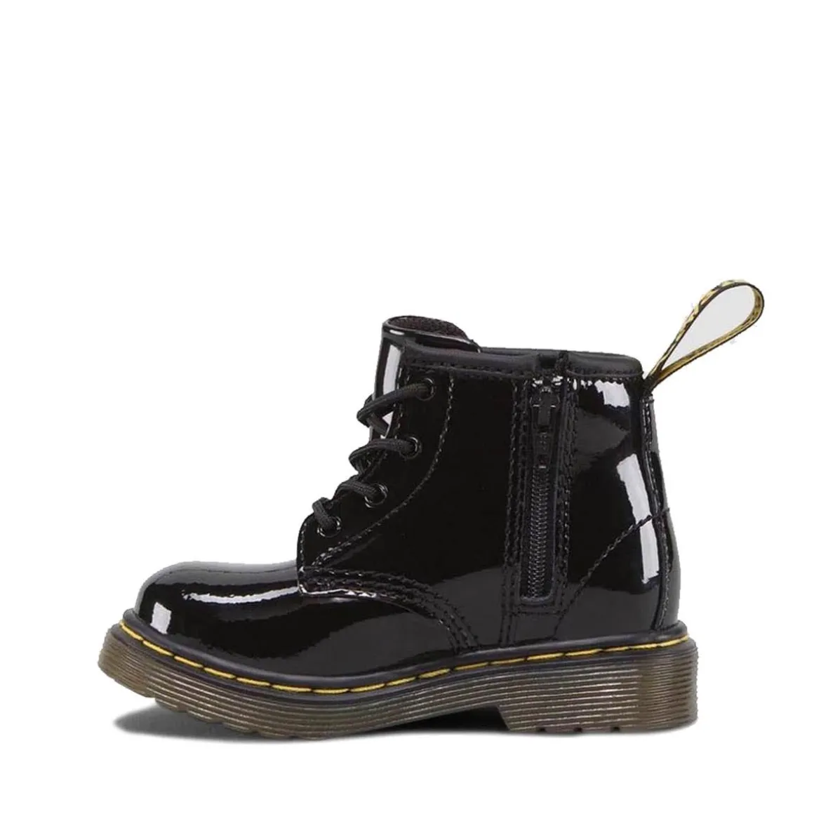 A mini 1460 for infants, this patent leather boot features an ankle zip for little fingers (and exhausted parents). The boot still comes with all the classic Docs DNA though, like grooved edges, yellow stitching and scripted heel-loop.