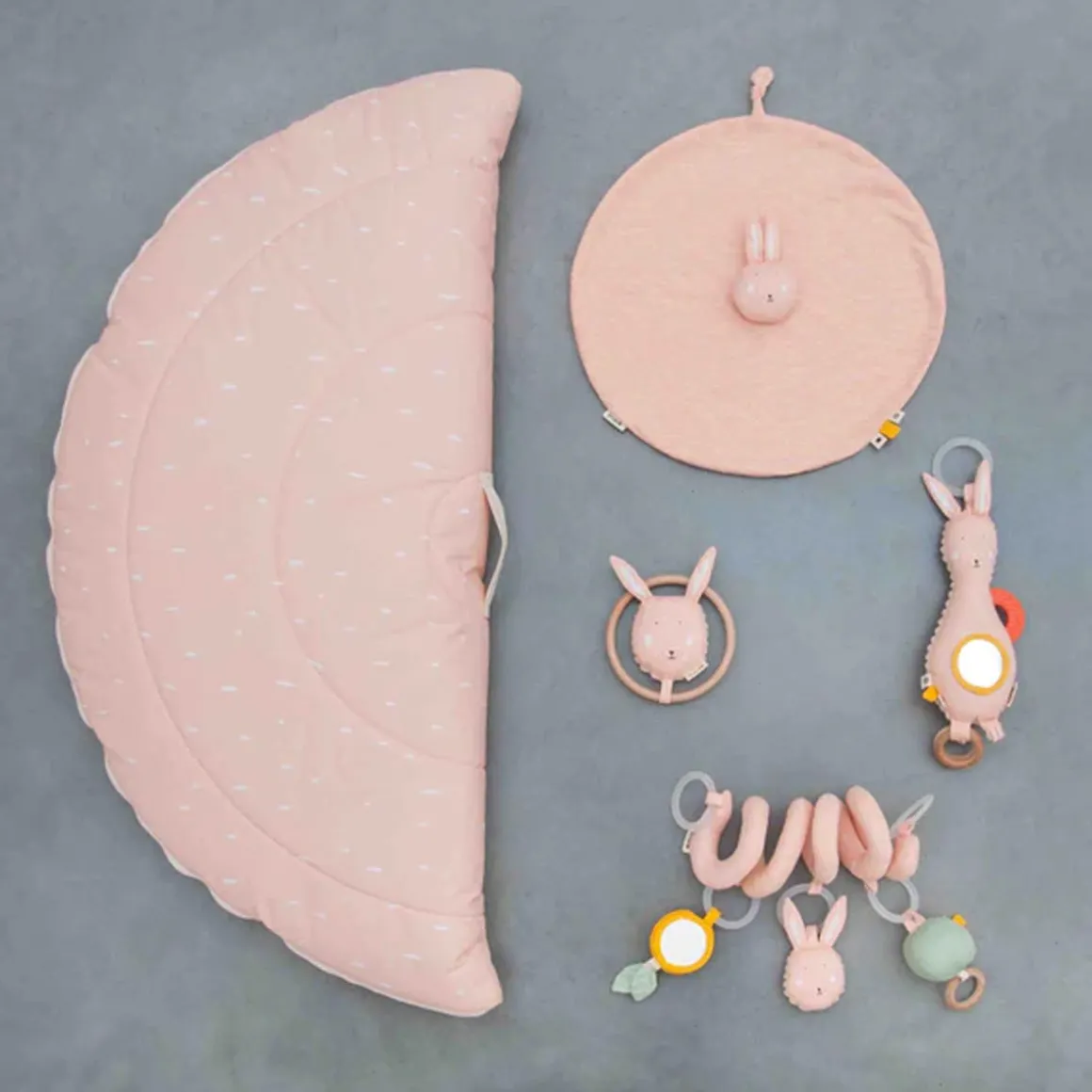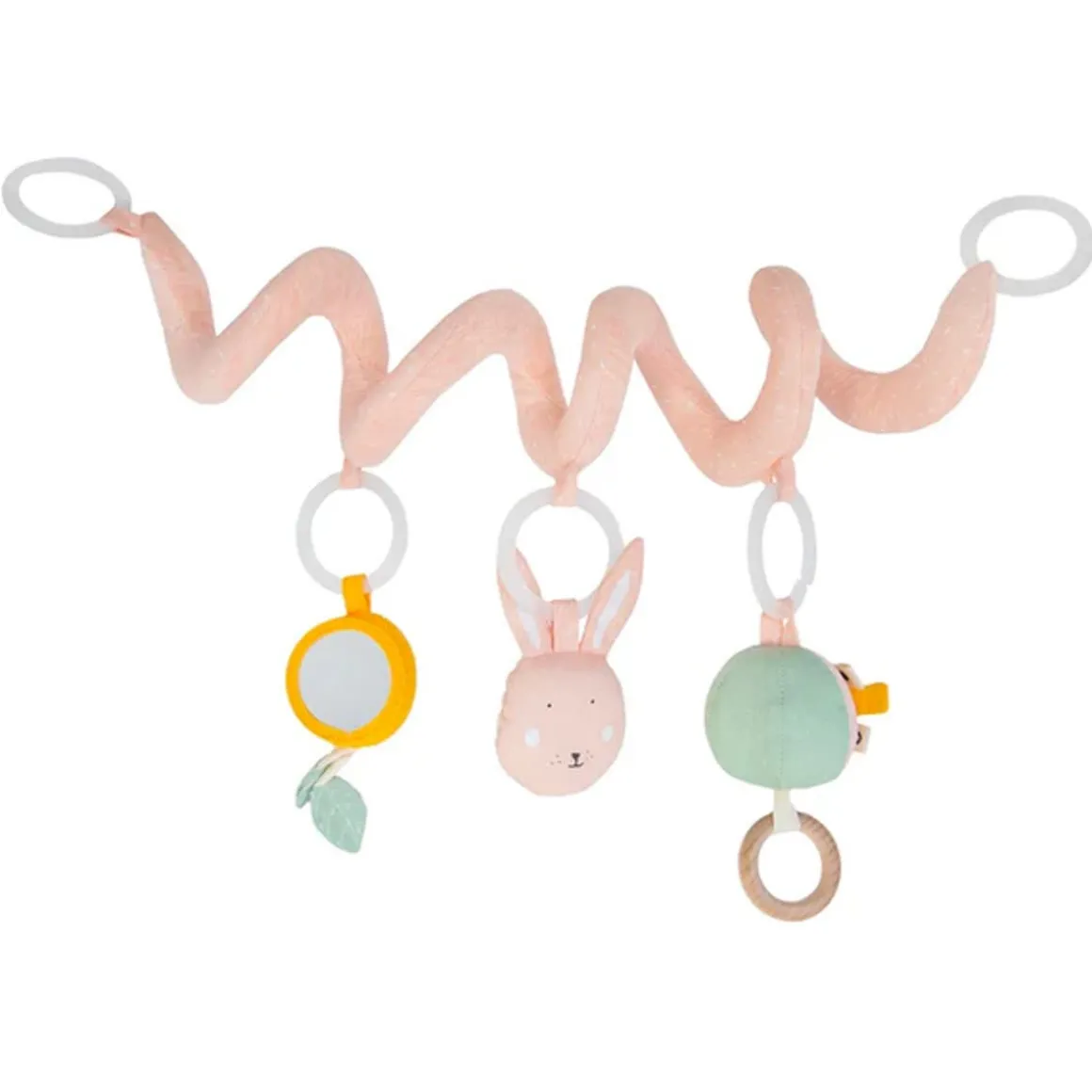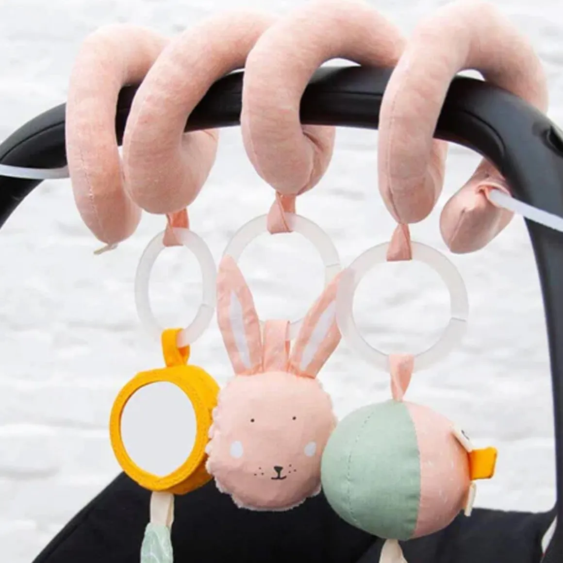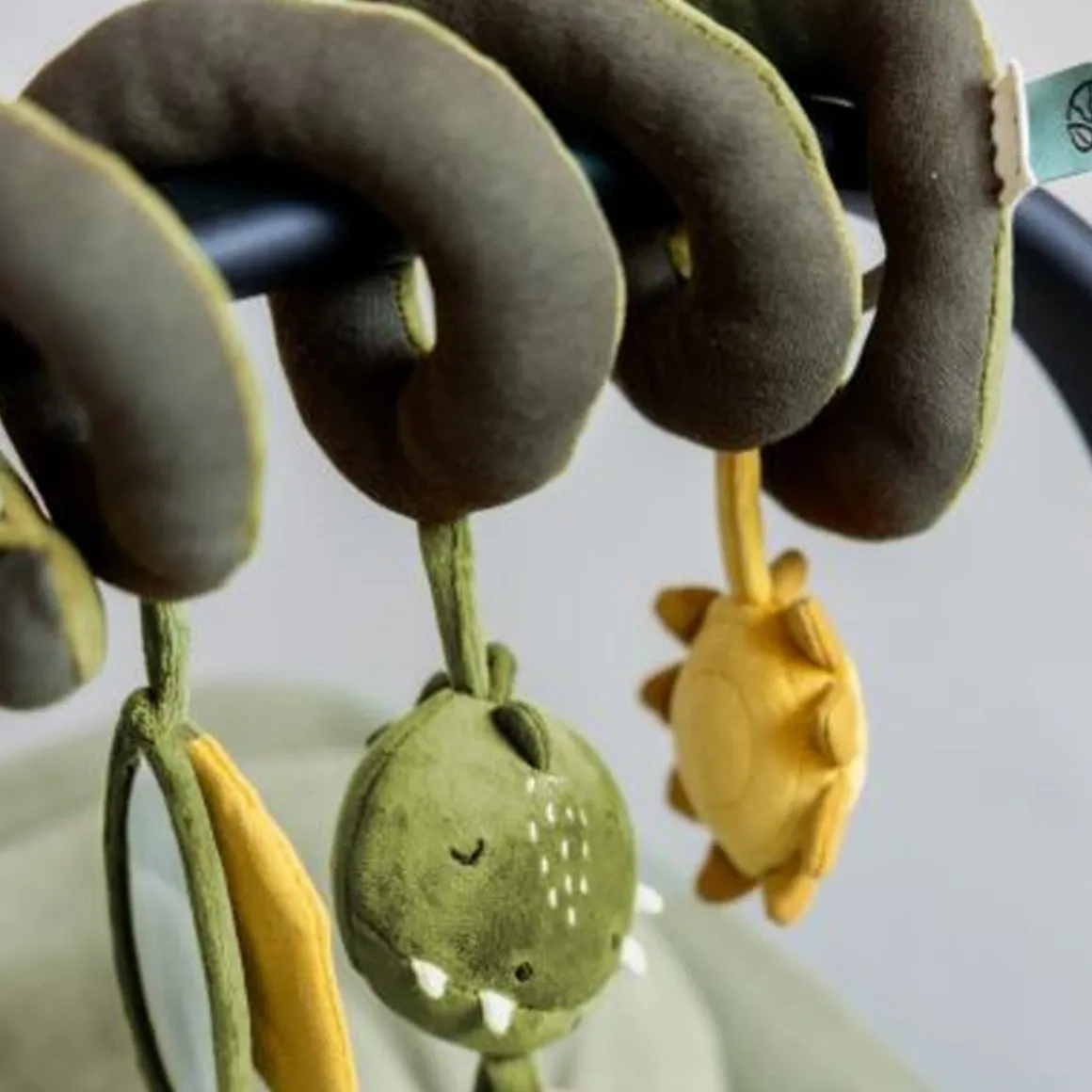With plenty of playful elements to discover, this activity spiral puts a smile on every little one’s face, and curls up perfectly around any baby carrier or playpen. Each of the three toys has different features, such as a wooden ring, crinkle paper, a mirror and more to entertain your child to play wherever you go. As all the elements are attached with handy toy rings, they can easily be taken off to continue the fun outside the baby carrier or playpen.