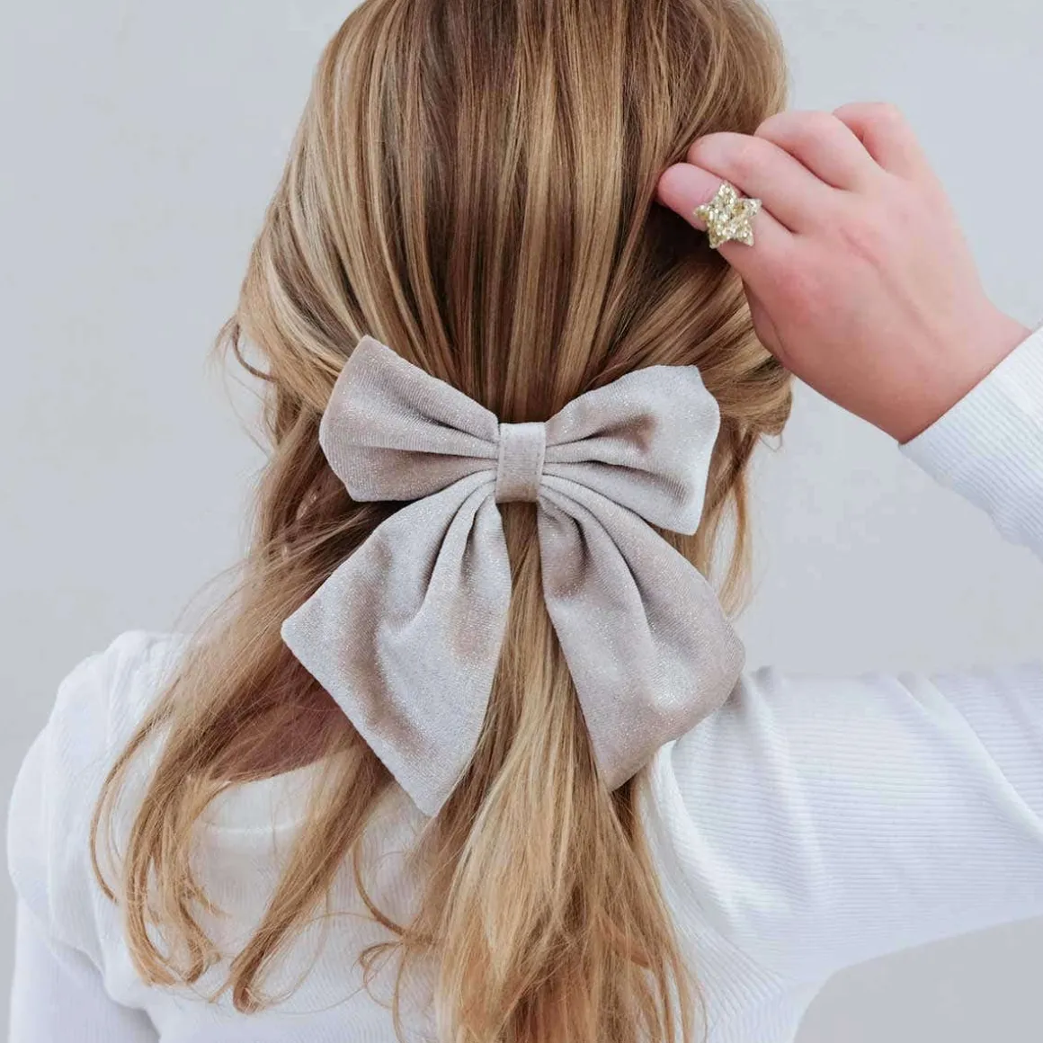 The Agnes oversize bow pack includes two delightful velvet bows in shimmering pink and cream, perfect for adding a stylish touch to any outfit. Ideal for accessorising throughout Autumn, the festive season, and beyond, these bows bring cosy charm to every look.