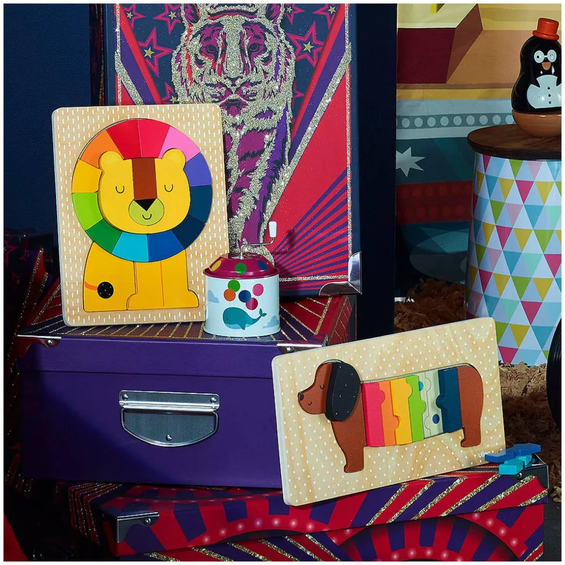How funny this multicolored sausage dog is, drawn with poetry by Andy Westface. Little ones will love putting together this wooden puzzle by replacing the 11 pieces in volume on their colored location. A first awareness game from 2 years old to exercise children’s observation and fine motor skills. They will be very proud to show you the final result! Well done !