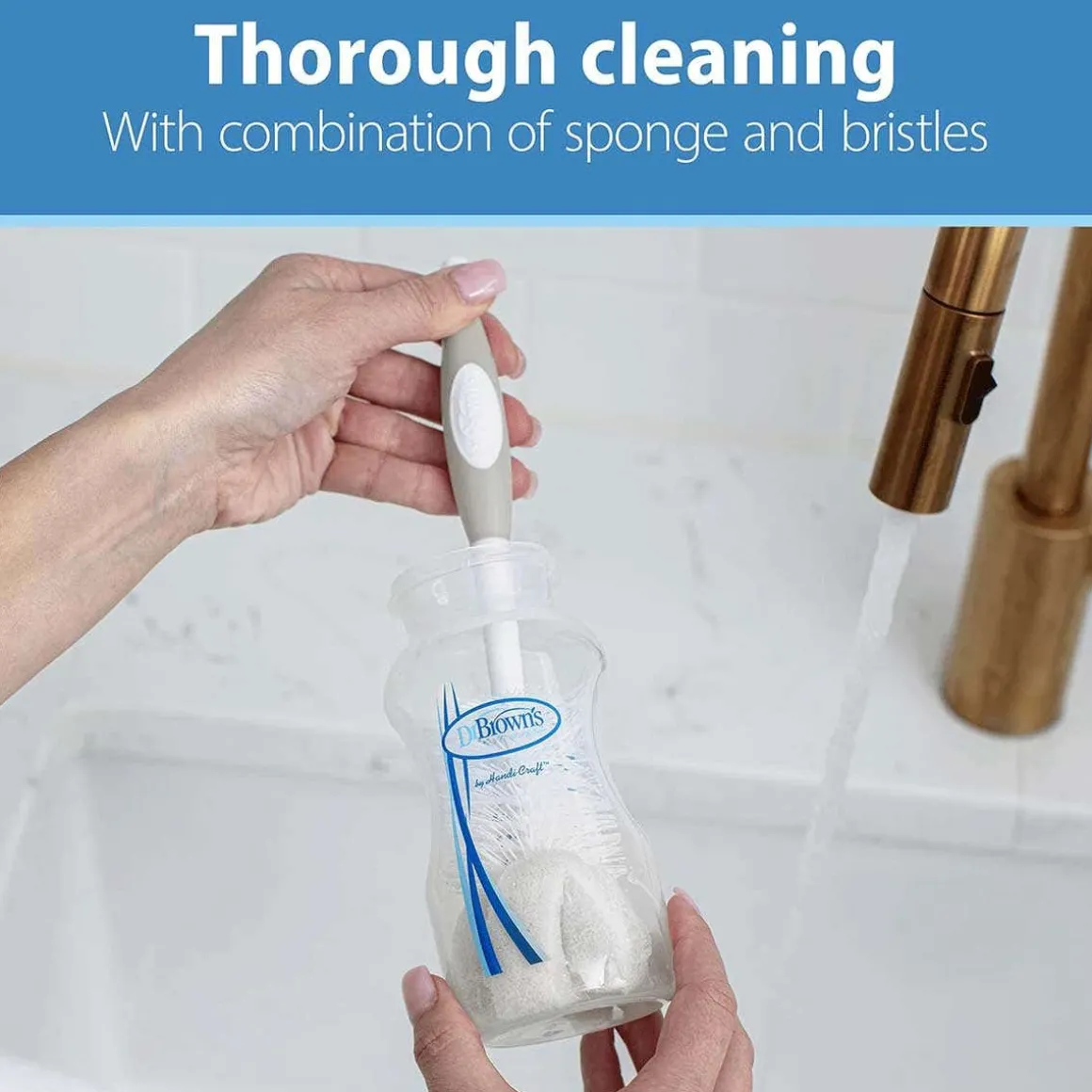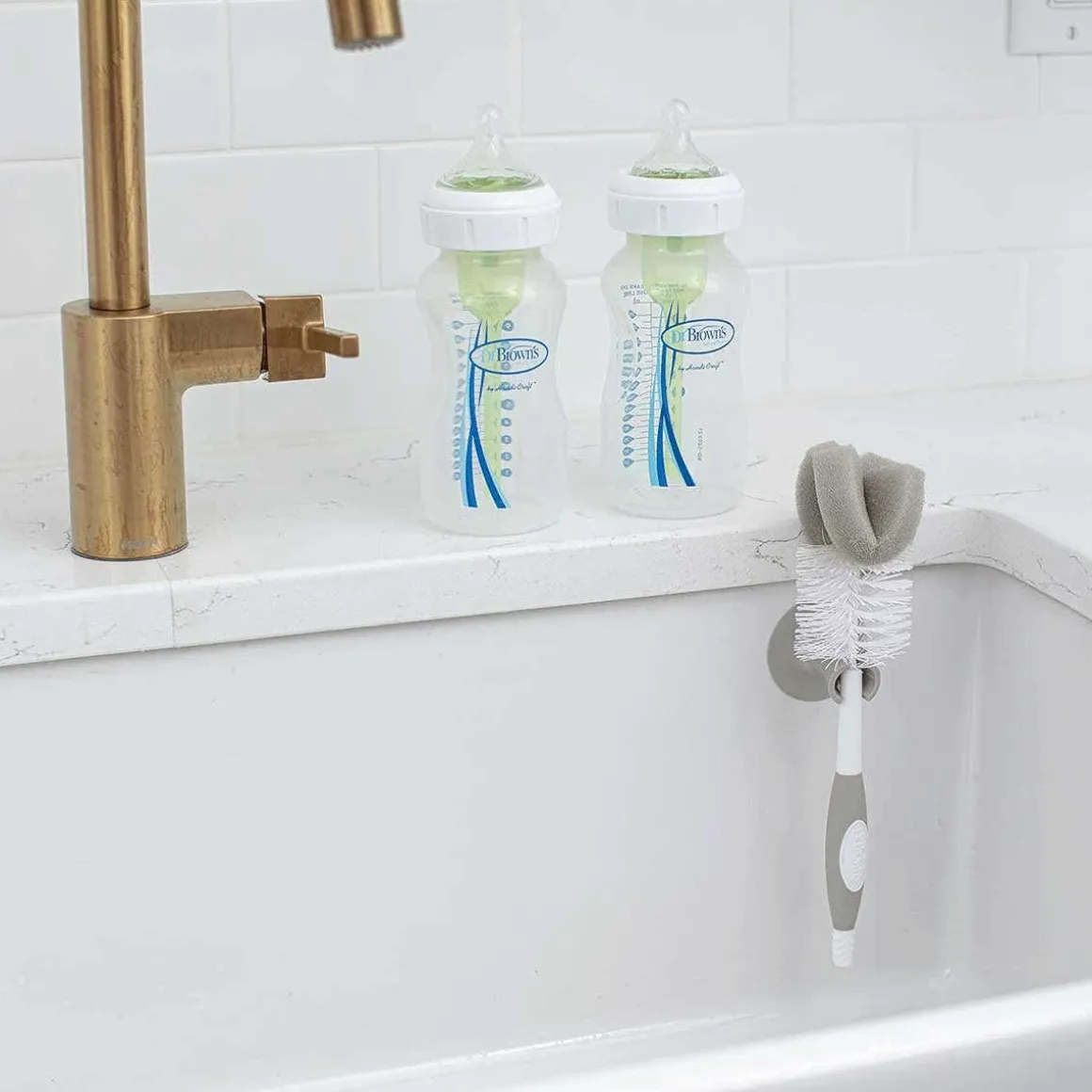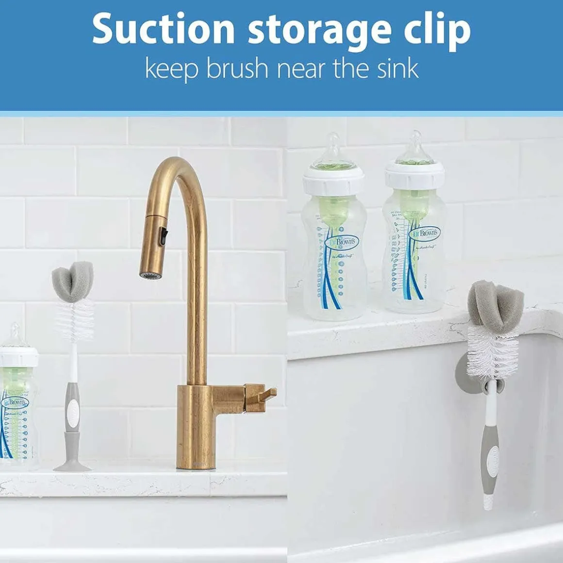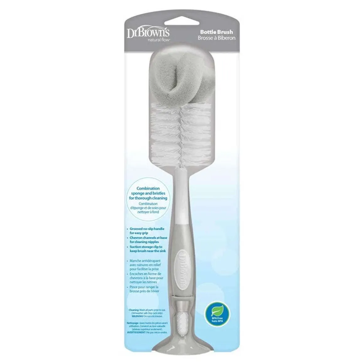 A parent-favorite! The combination bristle and sponge head and ridged nipple cleaner thoroughly scrub bottles and nipples. The Dr. Brown’s Bottle Brush is designed specifically for all Dr. Brown’s bottles and features a combination bristle and sponge head to thoroughly scrub bottles clean. A built-in storage clip houses the brush within easy reach.