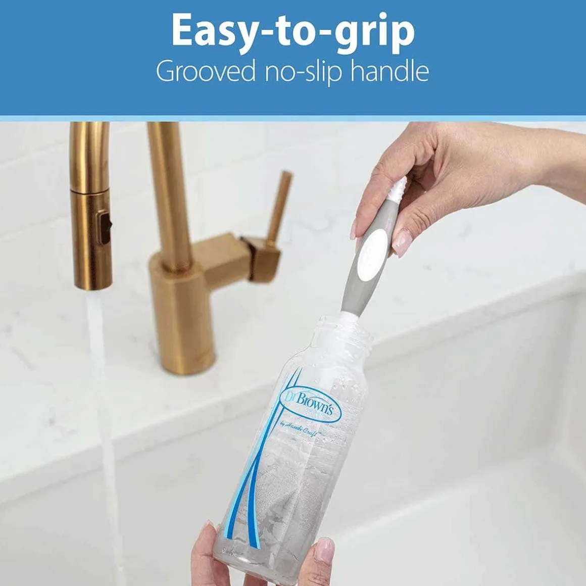 - Grooved no-slip handle for easy grip with soapy hands