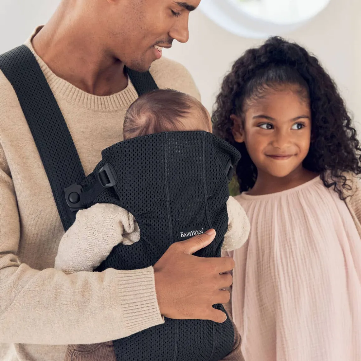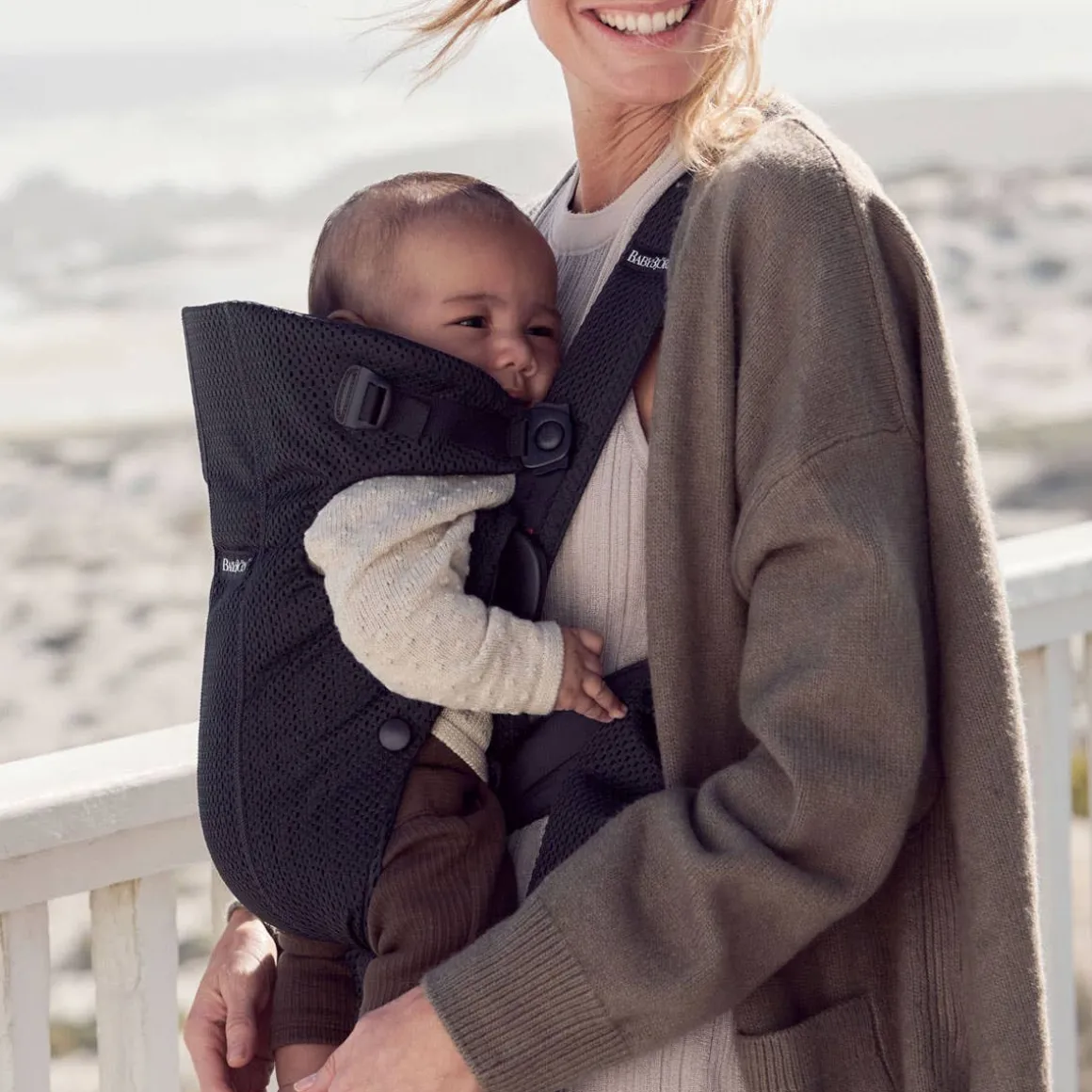- Perfect first baby carrier for a newborn: Baby Carrier Mini is a small and easy-to-use baby carrier that is best suited to newborns and their great need for closeness. You can carry your baby high on your chest, so they always feel your heartbeat.