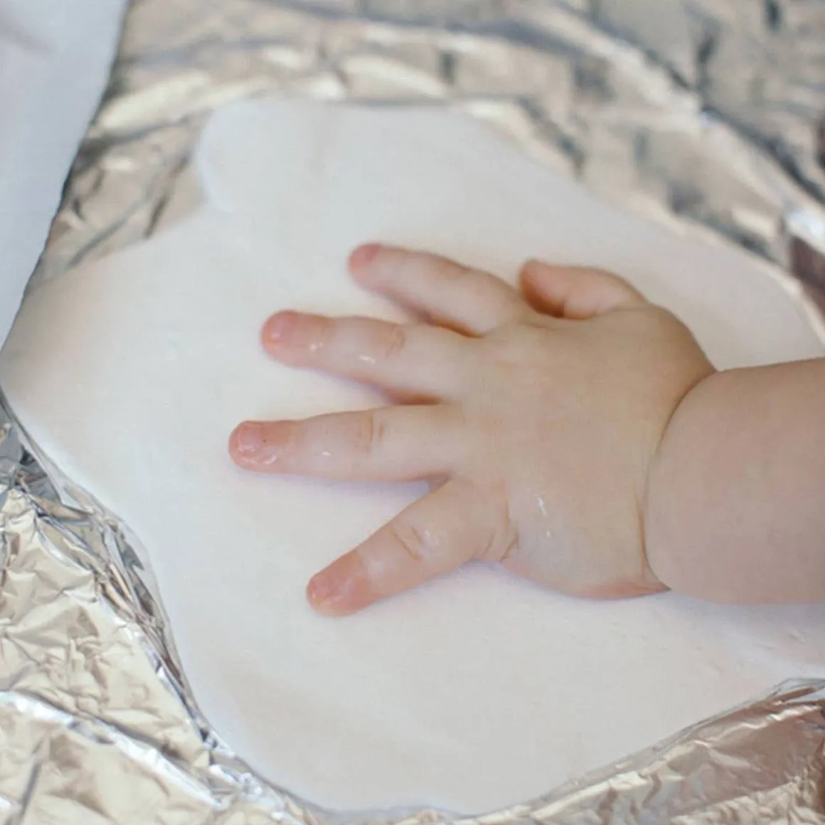 Capture and cherish your little ones prints forever with Pearhead’s babyprints keepsake. This babyprints keepsake comes with everything you need to make your little pearhead’s footprint or handprint. It includes one package of soft, air drying clay and a ribbon to display the keepsake once finished. The clay requires no mixing or baking! Simply knead the clay and roll it out to the size of the included shaping ring. Press baby’s hand or foot in the clay gently but hard enough to create an impression. If you make a mistake – no problem! You can redo it as many times as you need until you get the perfect impression. Once you have your print, use the shaping ring to make a circle and a hole for the ribbon. Then pull off the excess clay and let dry for 1-2 days. Use the white, pink, or blue ribbon as your finishing touch! Now you will always be able to remember how little your baby’s piggies were with Pearhead’s babyprints keepsake.